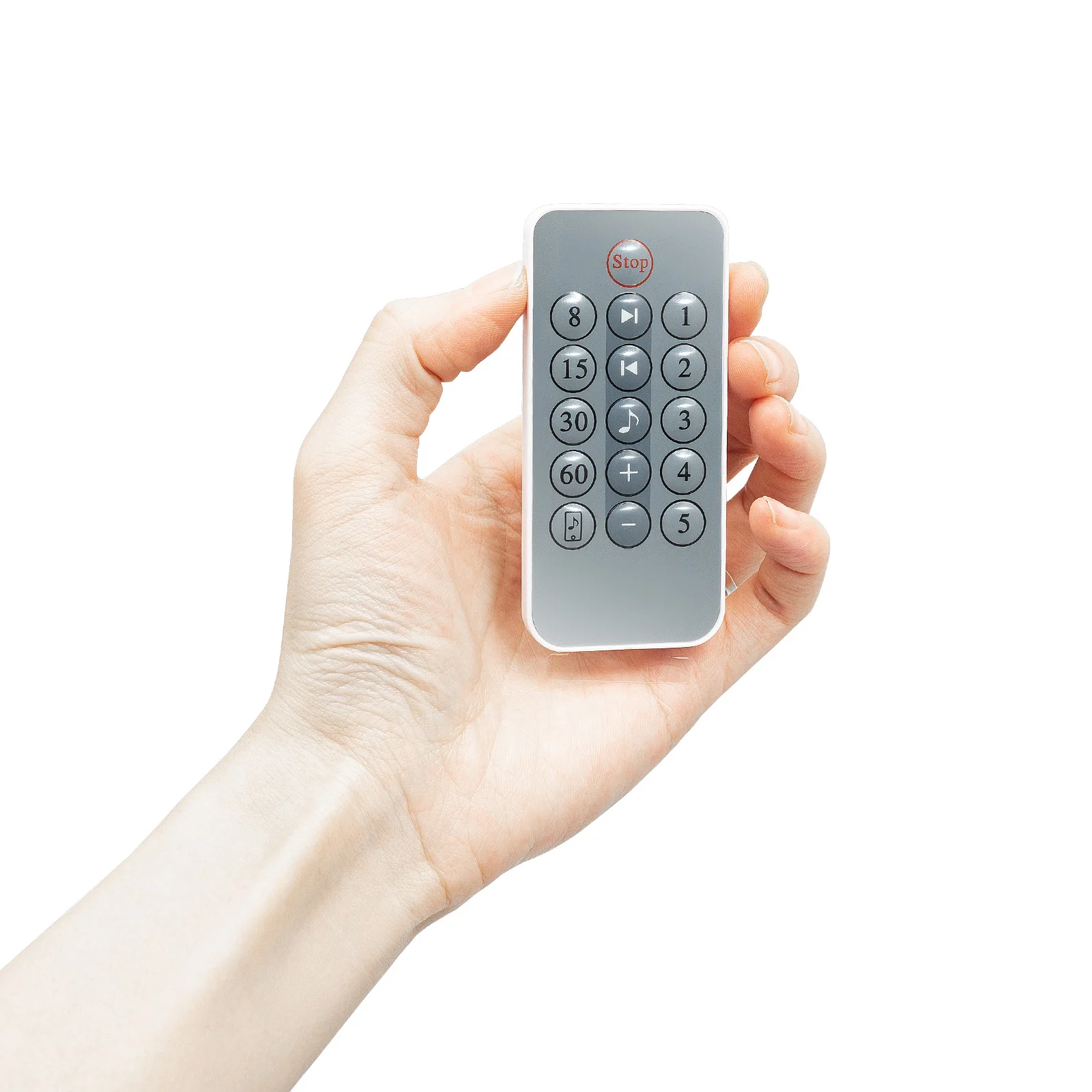 Dual Control: You can use the buttons on the operation panel and remote control (within a range of 16.4ft) to set time(8/15/30/60mins), swing amplitude(5 gears) and music, offering great convenience.