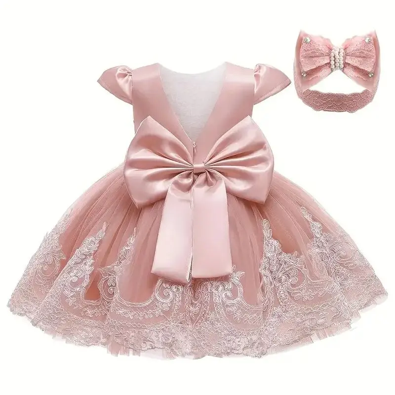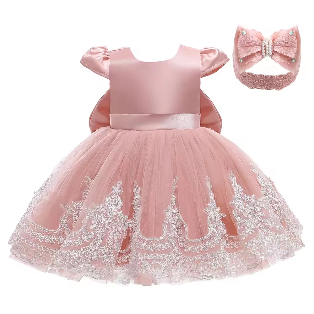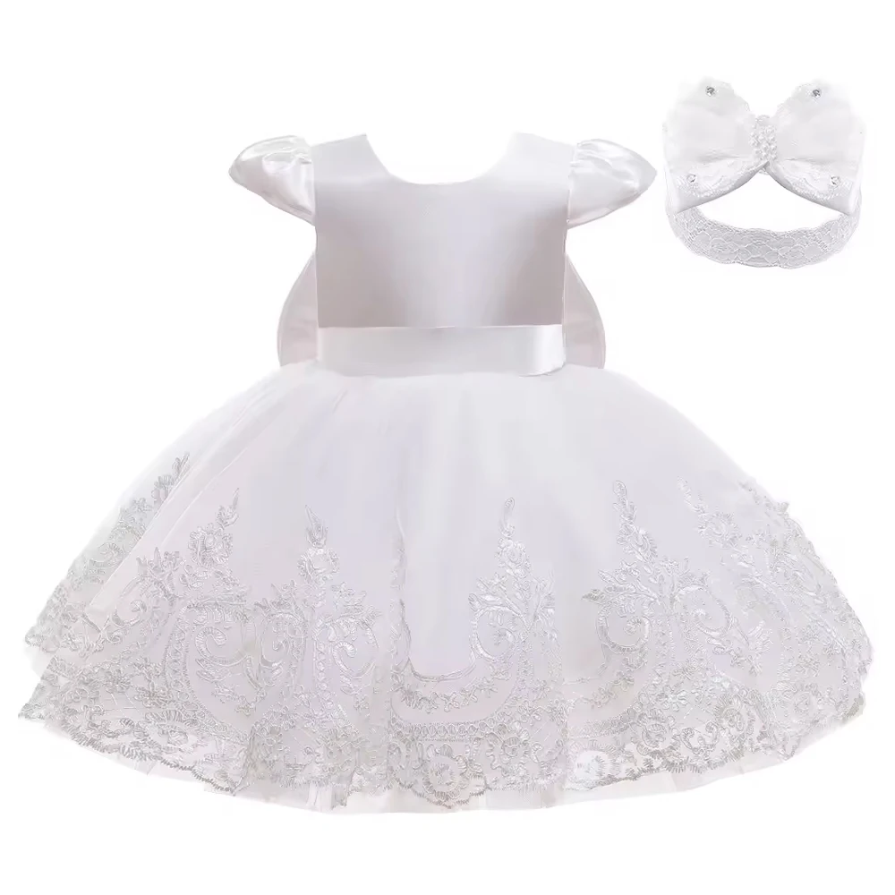 0.2years Baby Flower Girls Dress Tulle 1st Birthday Party Baptism White Dresses Girls Princess Wedding Bridemaid Prom Costume