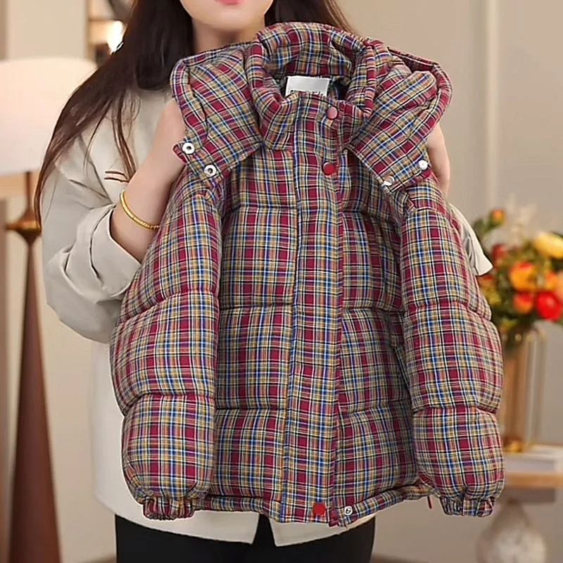 2025 New Retro Checkered Down Cotton Jacket for Children's Winter Thickened Warm Cotton Jacket Children's Coat