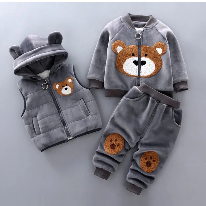 3PCS Winter Autumn Toddler Baby Boys Girls Clothes Baby Sweaters Coat +Pants +Hooded Vest Outfit Set Infant Warm Clothing Suits