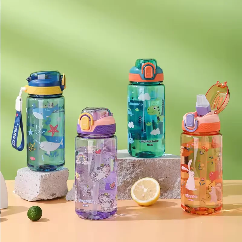600Ml Kids Sippy Cup Water Bottles Creative Cartoon Feeding With Straws And Lids Spill Proof Portable Toddlers Beverage cups