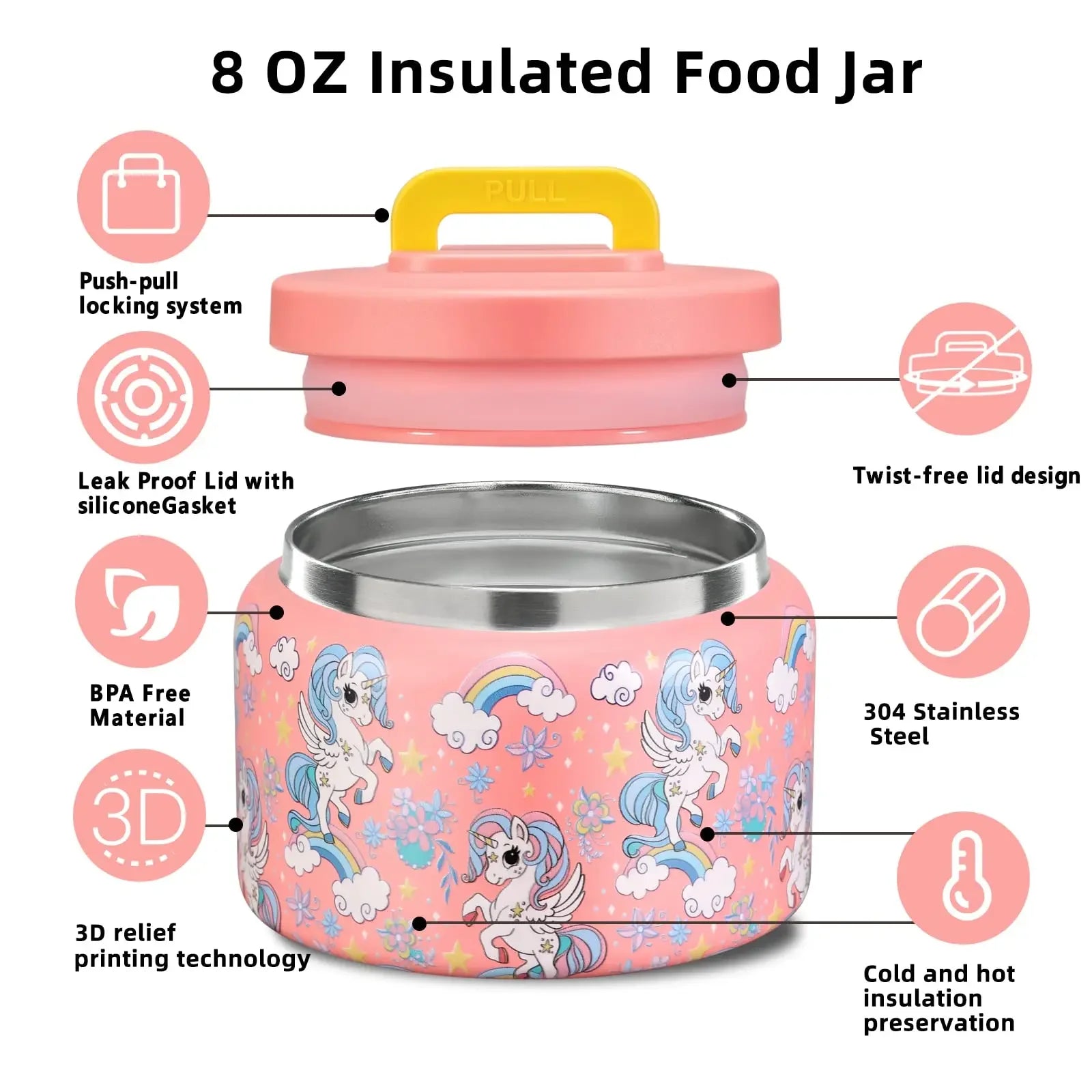 8 Oz Stainless Steel Insualted Vacuum Food Jar for Kids, BPA free, Leakproof