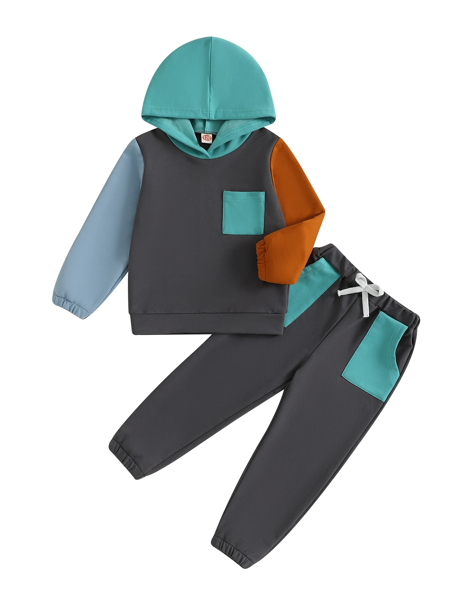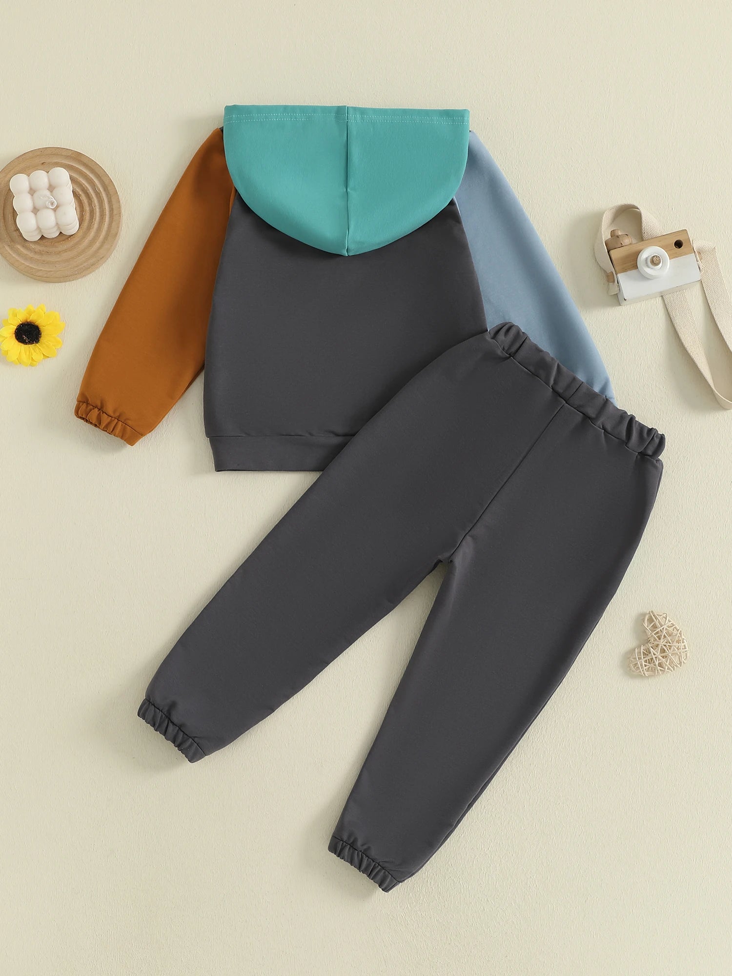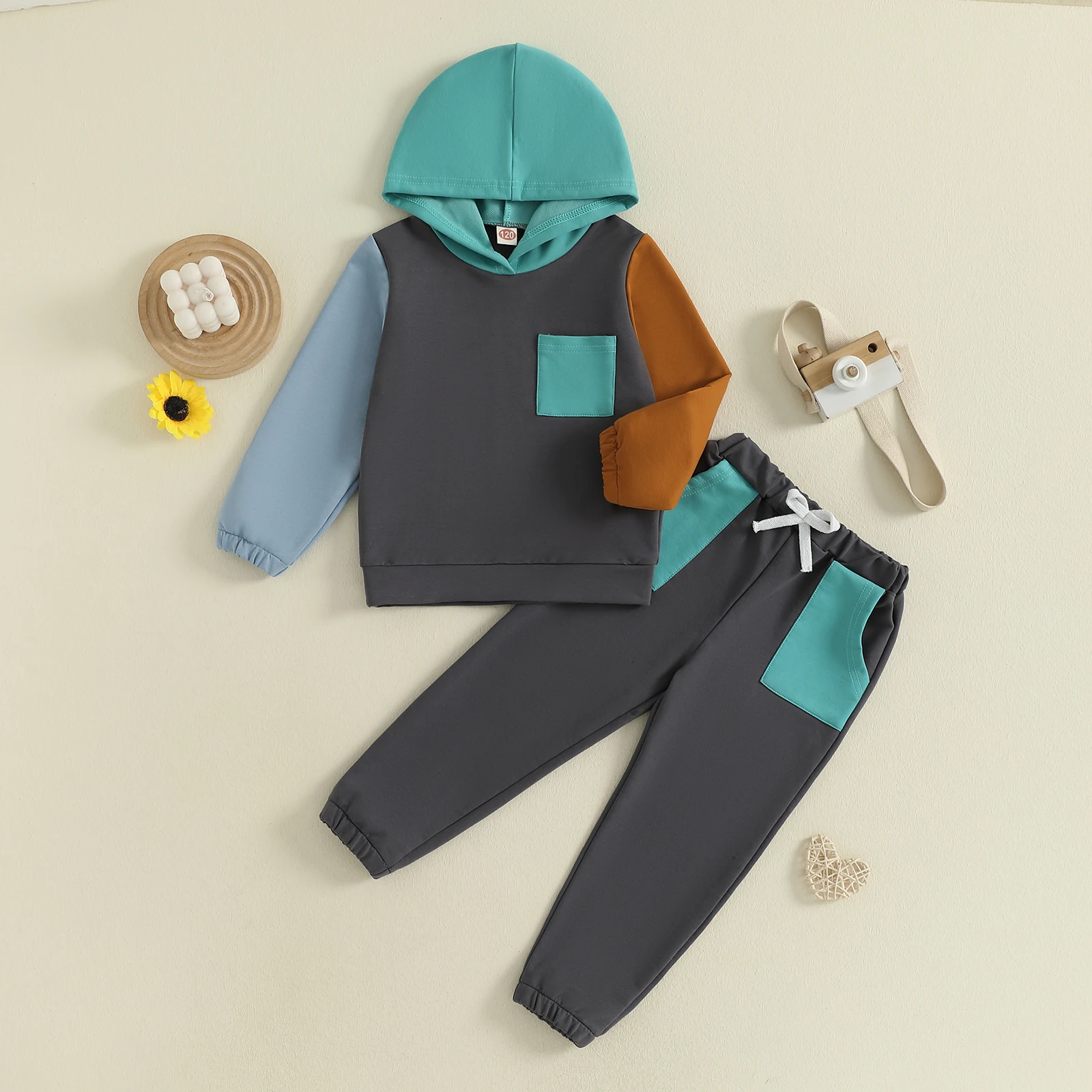Toddler Baby Boys Clothing Set Fashionable Contrast Color Long Sleeve Hoodie with Pants 2 Pcs Fall Outfits