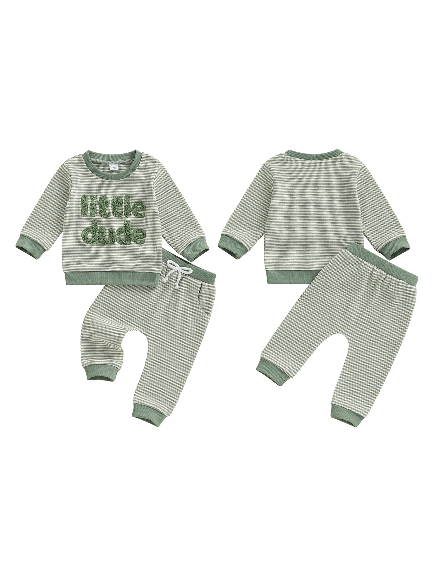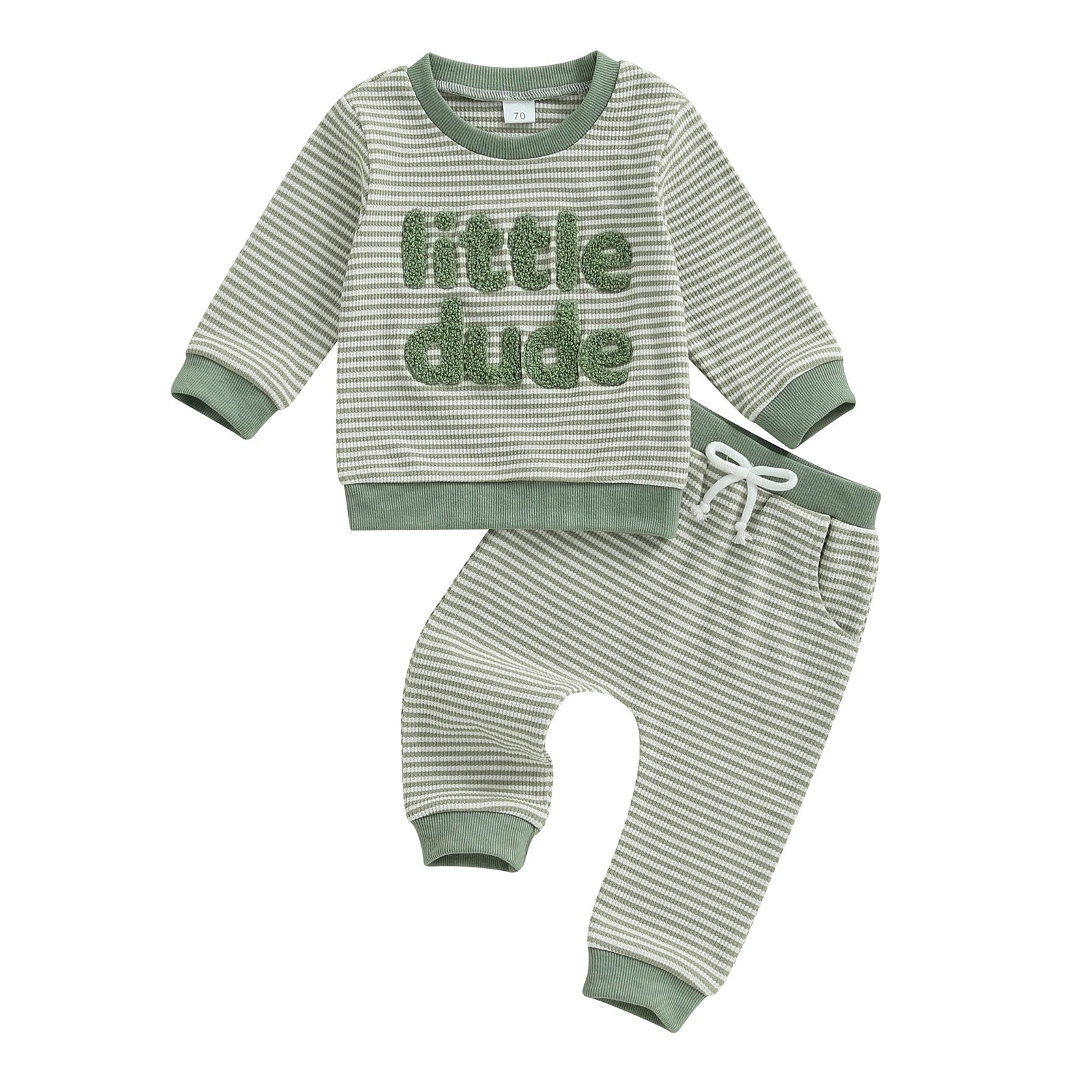 Adorable Infant Boys 2-Piece Set Stylish Striped Pullover with Embroidered Letters and Matching Pants for Autumn