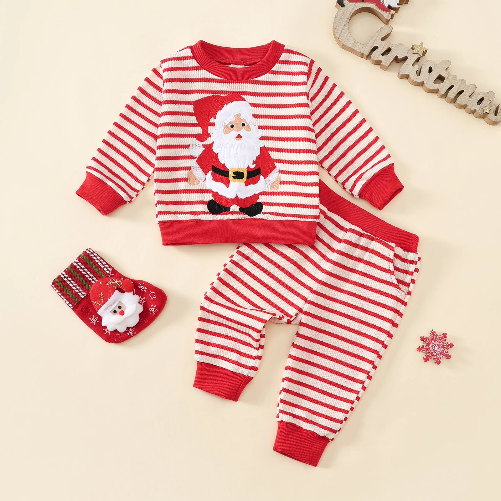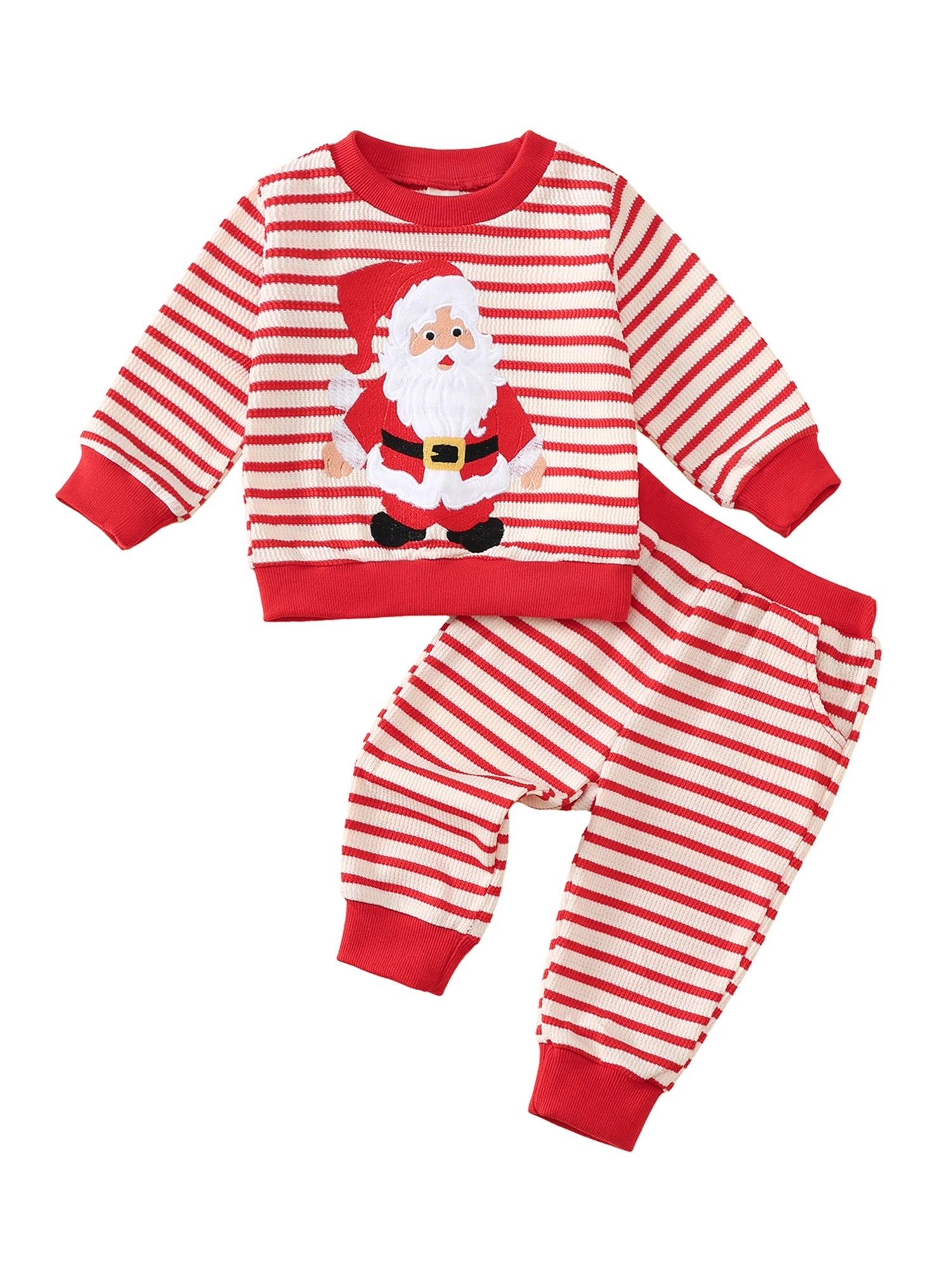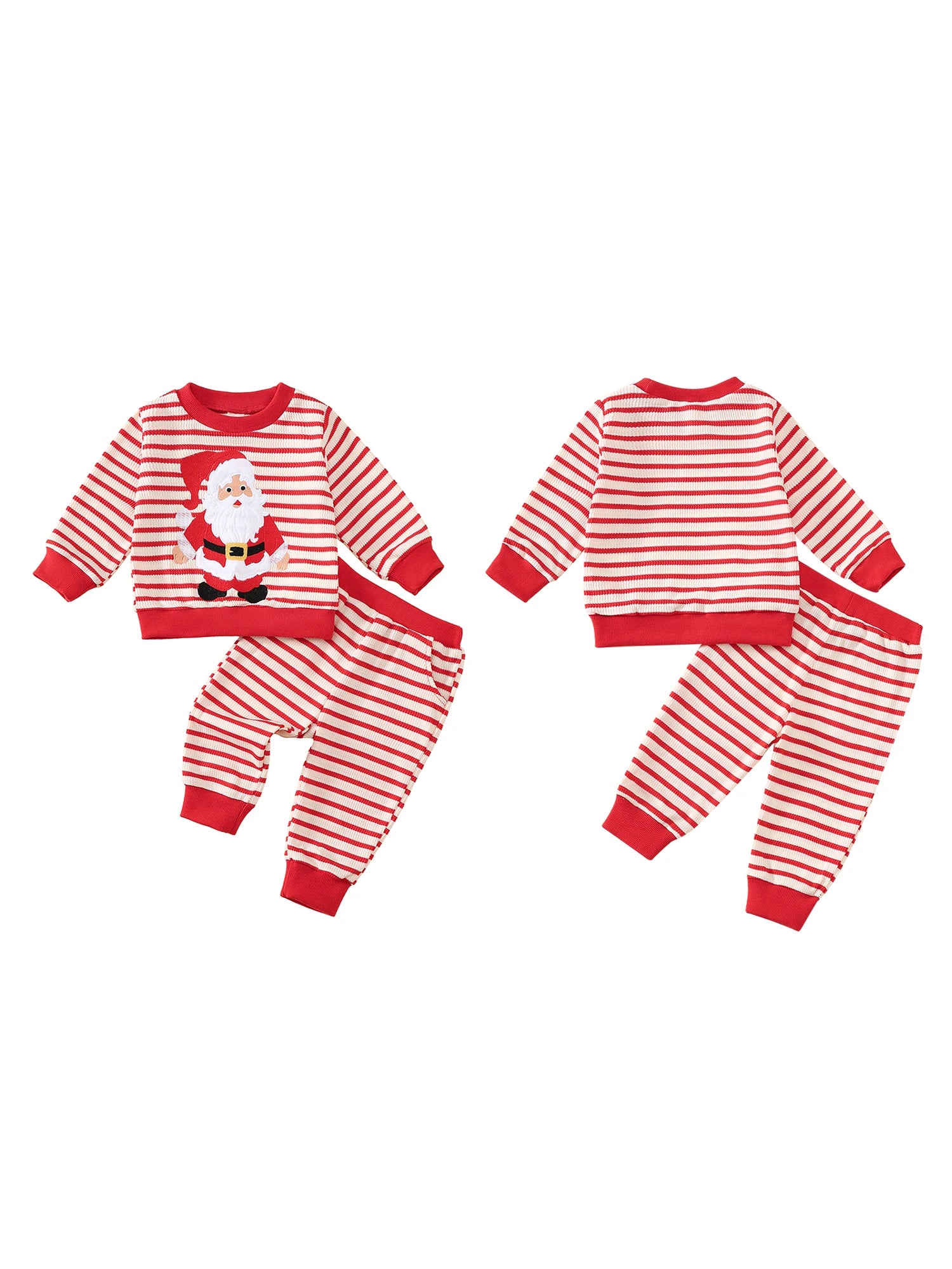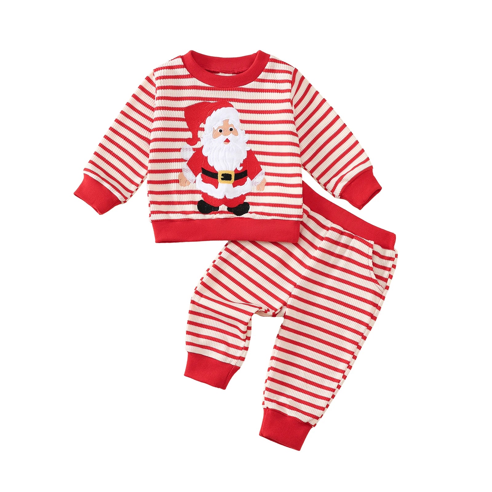 Toddler Baby Striped Set Fashionable Long Sleeve Santa Claus Pattern Pullover with Pants 2 Pcs Christmas Outfit