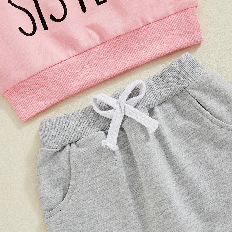 Baby and Sister Matching Outfits Letter Print Long Sleeve Pullover Sweatshirt Elastic Waist Pants for Fall Winter
