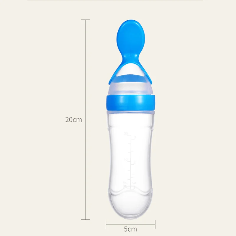 Baby Feeding Bottle With Spoon 90ml Silicone Newborn Infant Squeeze Spoon Toddler Food Supplement food Cereal Bottle Milk Feeder