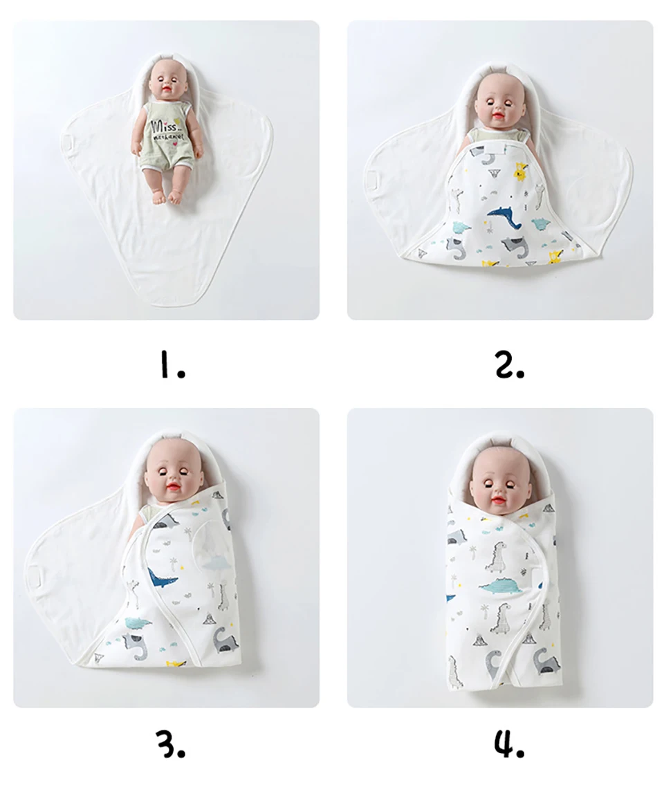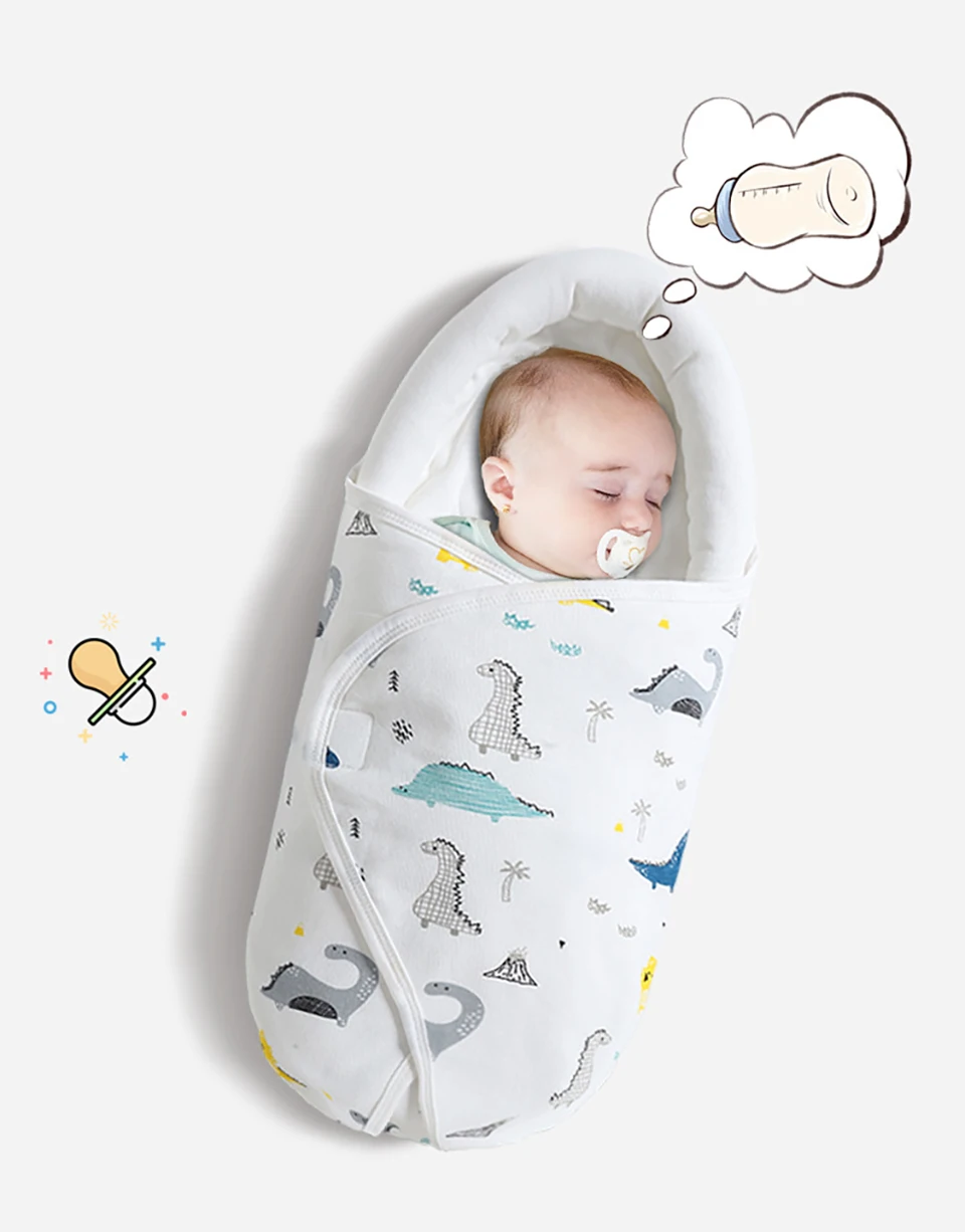 Baby Swaddling Blanket Cotton Infant Nursery Wrap For Newborns Dinosaur Print Head Neck Protector Blanket Warm Baby Blanket
