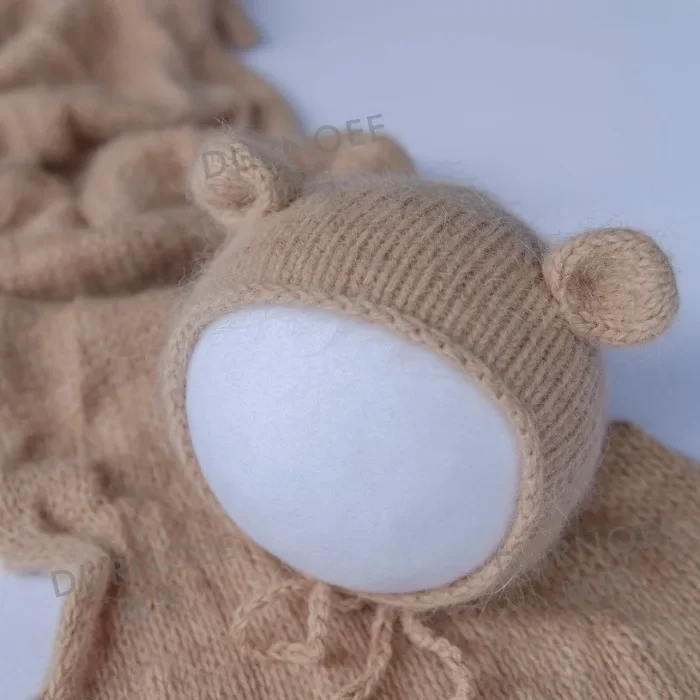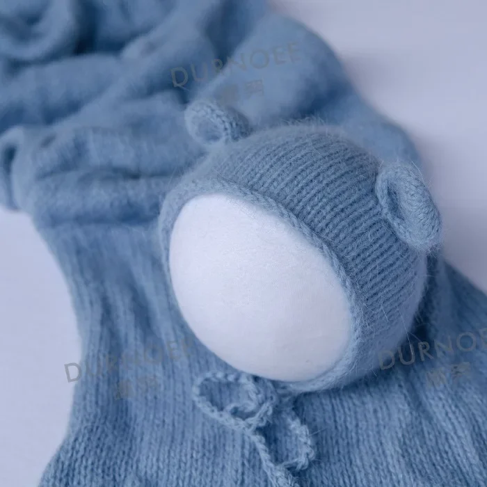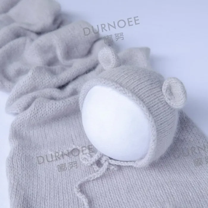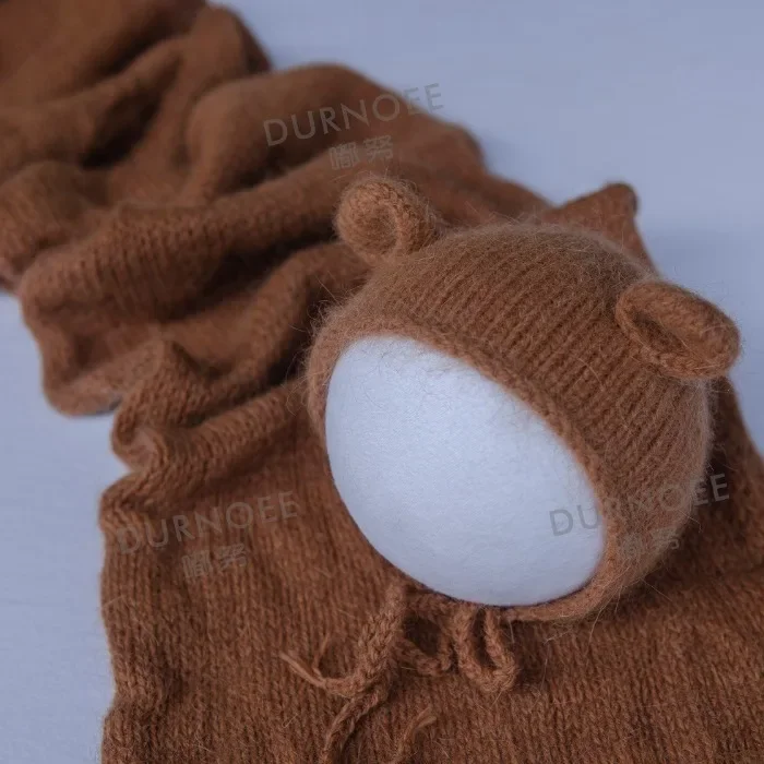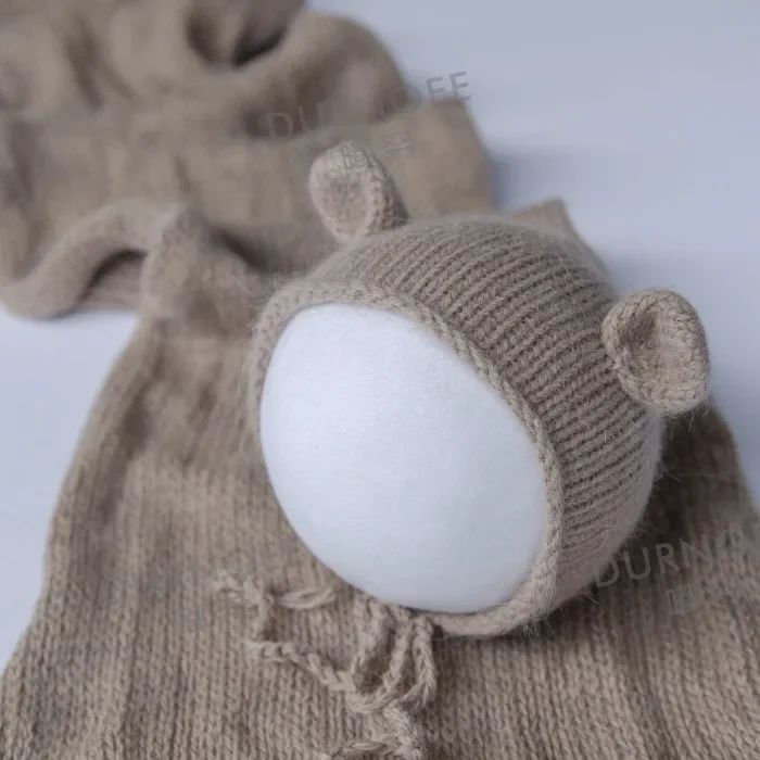 Baby Swaddling Blanket Newborn Photography Receiving Stretchable Wool Wrap Handmade Hat Photo Shooting Accessories