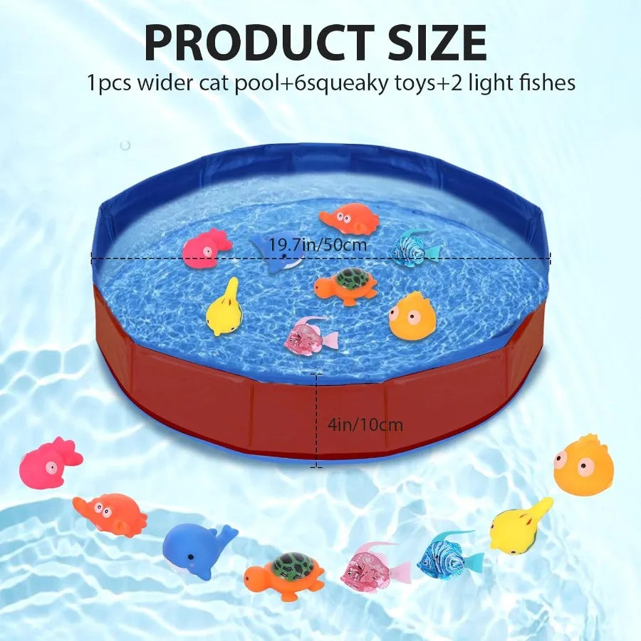 Cat Pool Toy with Interactive Fish Portable Cat Enrichment Toys for Indoor Cats Self Play Summer Kitty Pool with 8 Floating Swi