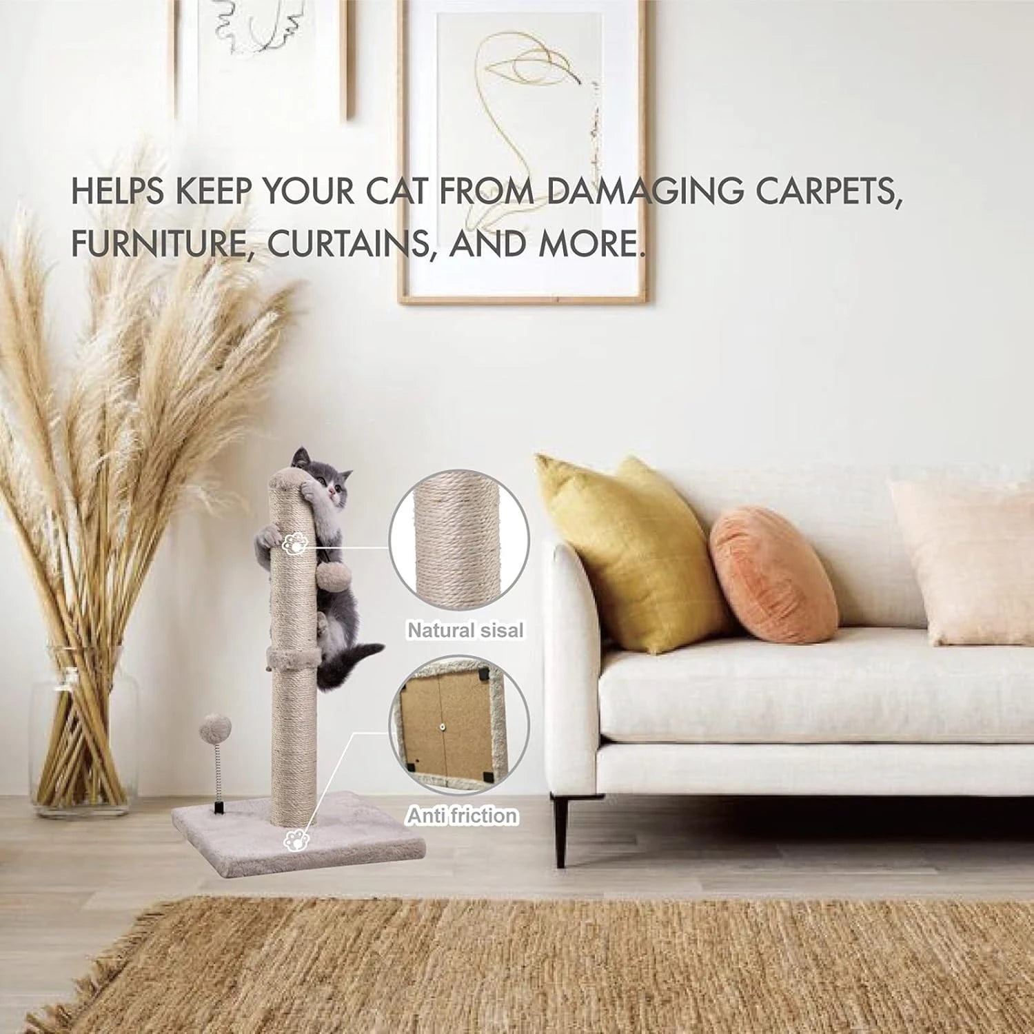 Cat Scratching Post with Hanging Ball - 22” Sisal Scratch Pad for Kittens & Small Cats - Durable Basics Design - Beige