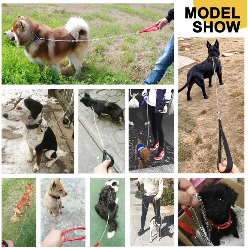 Chew Proof Dog Leash for Medium Large Dogs Heavy Duty Metal Chain Dog Leash with Soft Padded Handle Anti Bite Chain for Pitbull