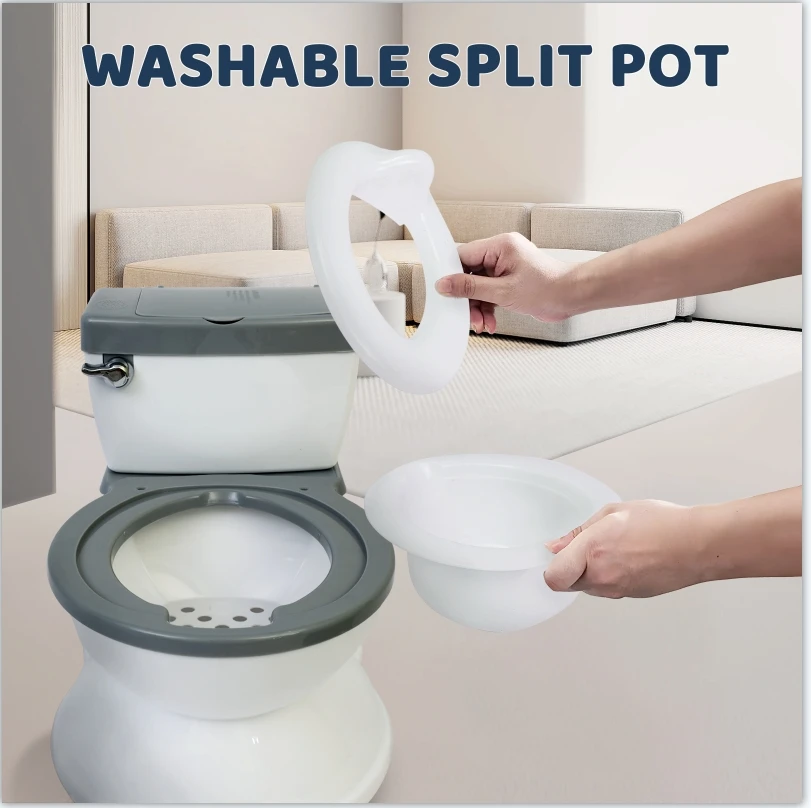 【Simulated Design, Adapting to Real Environments Early】This potty adopts a simulated design, resembling an adult potty in appearance, with a moderate size for babies to straddle. It allows babies to adapt to real bathroom environments early, fostering their independent toilet habits. As babies grow, they can gradually transition to using adult toilets, preparing for future life.