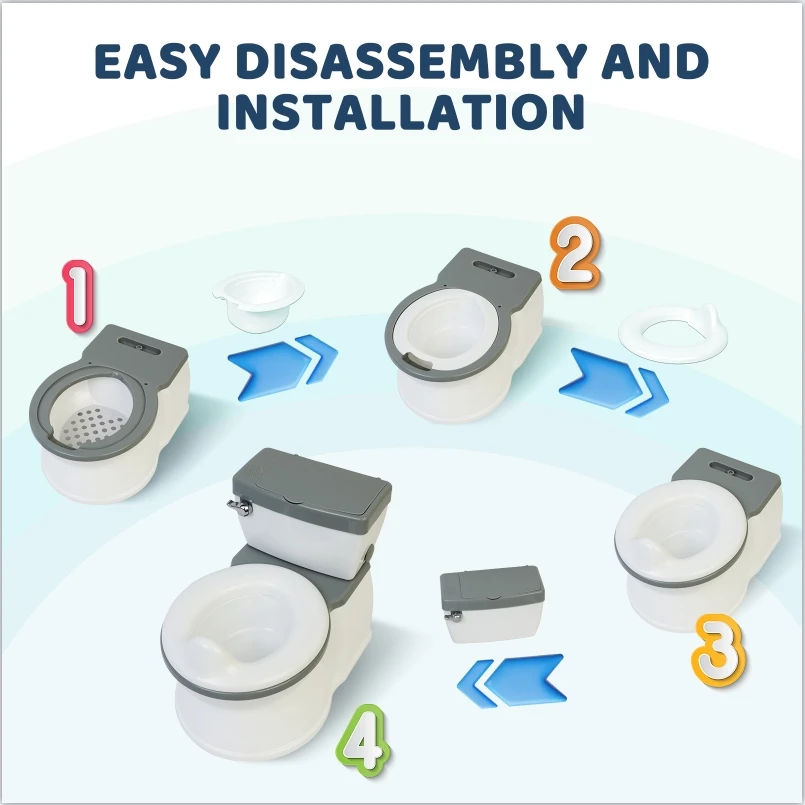 【Simulated Flushing Sound, Fostering Good Habits】After each use, a gentle press produces a realistic flushing sound, adding fun and guiding babies on correct potty usage, fostering their flushing awareness. By imitating adult behavior, babies can quickly learn toilet skills and develop good hygiene habits.