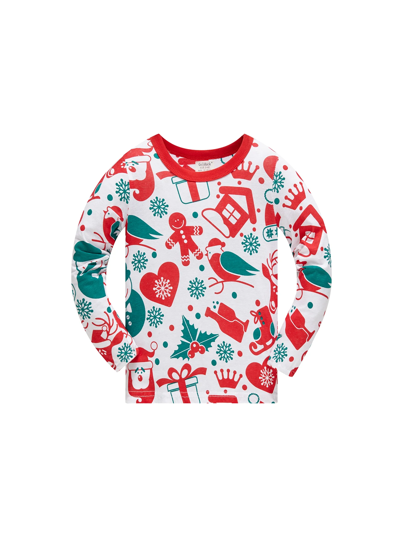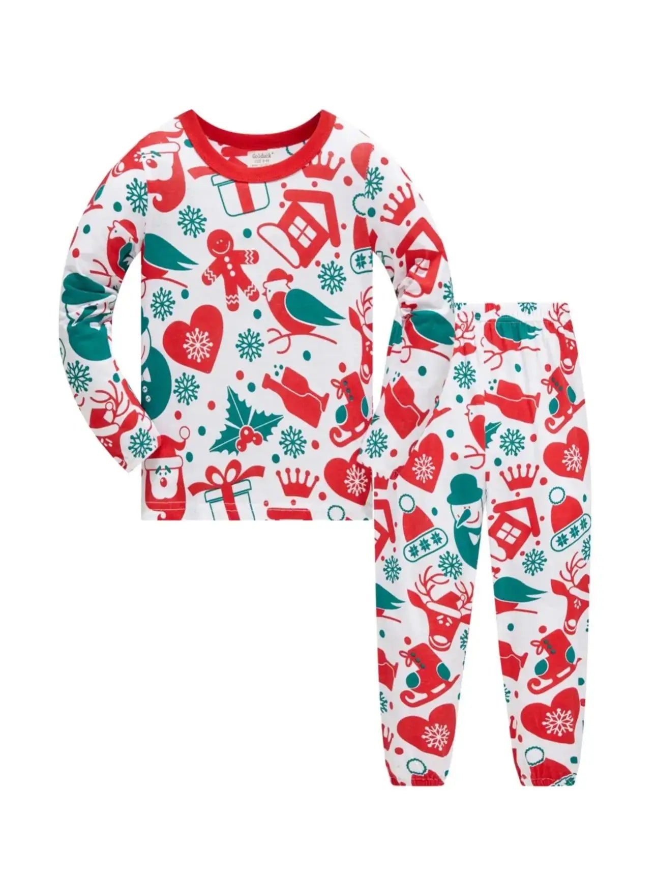 Christmas Pajamas 100% Cotton Long Sleeve sleepwear 1-8 Year Old Boys and Girls Cartoon Christmas Pattern Full Print Pajama Set