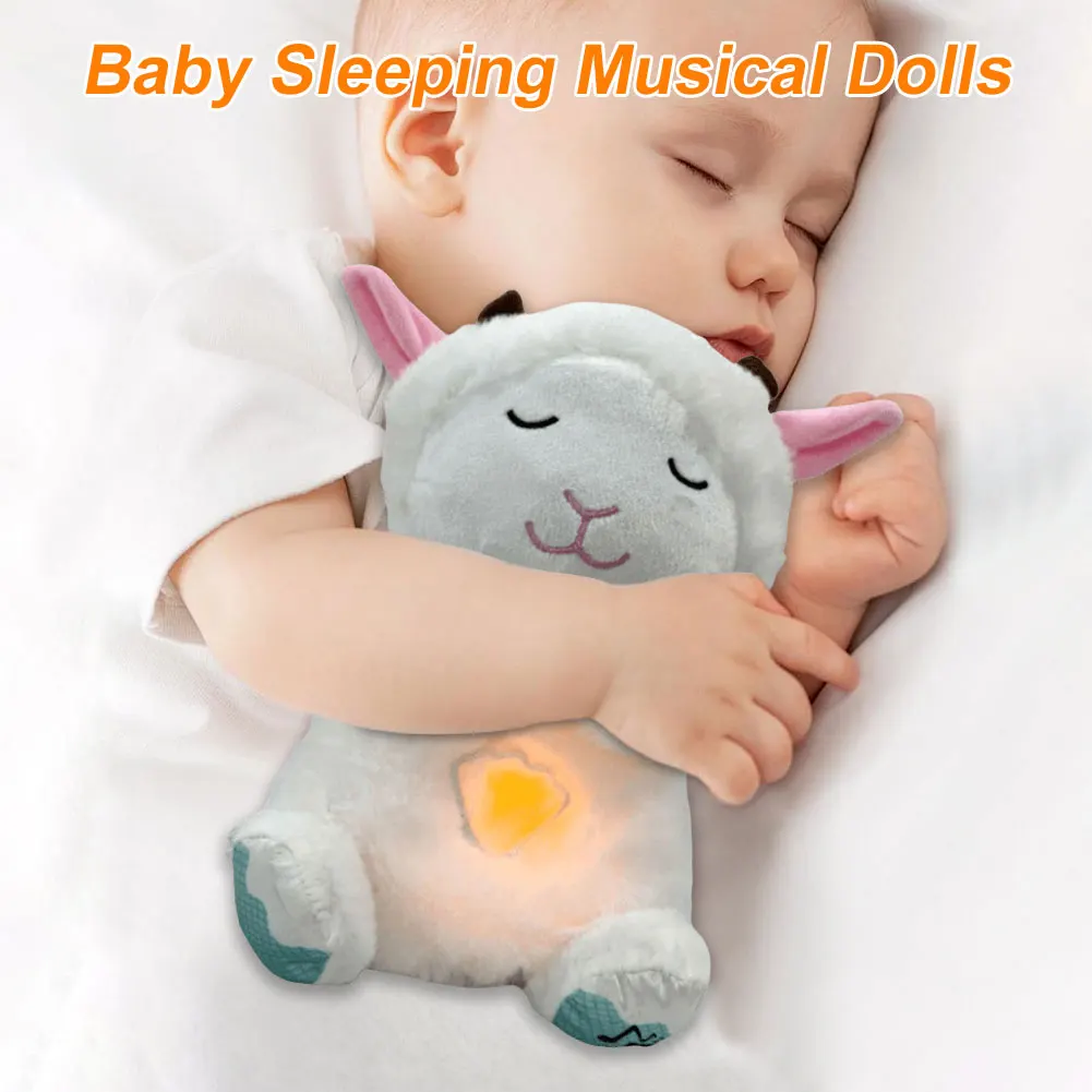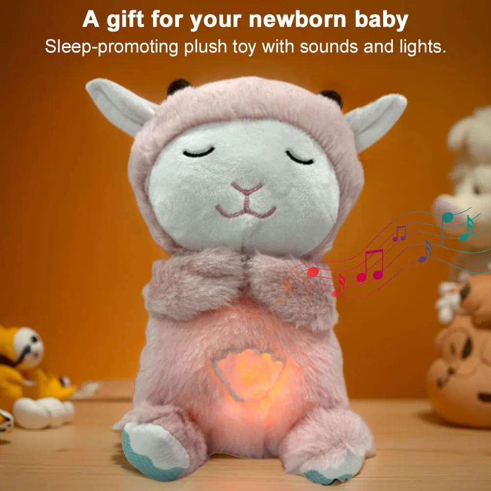 Cute Animal Baby Sound Machine with Music Lights Rhythmic Breathing Motion Comfort Doll Plush Stuffed Animal for Newborn Infants