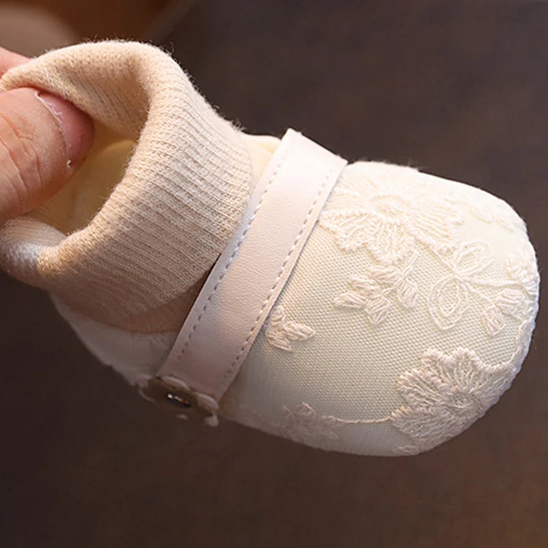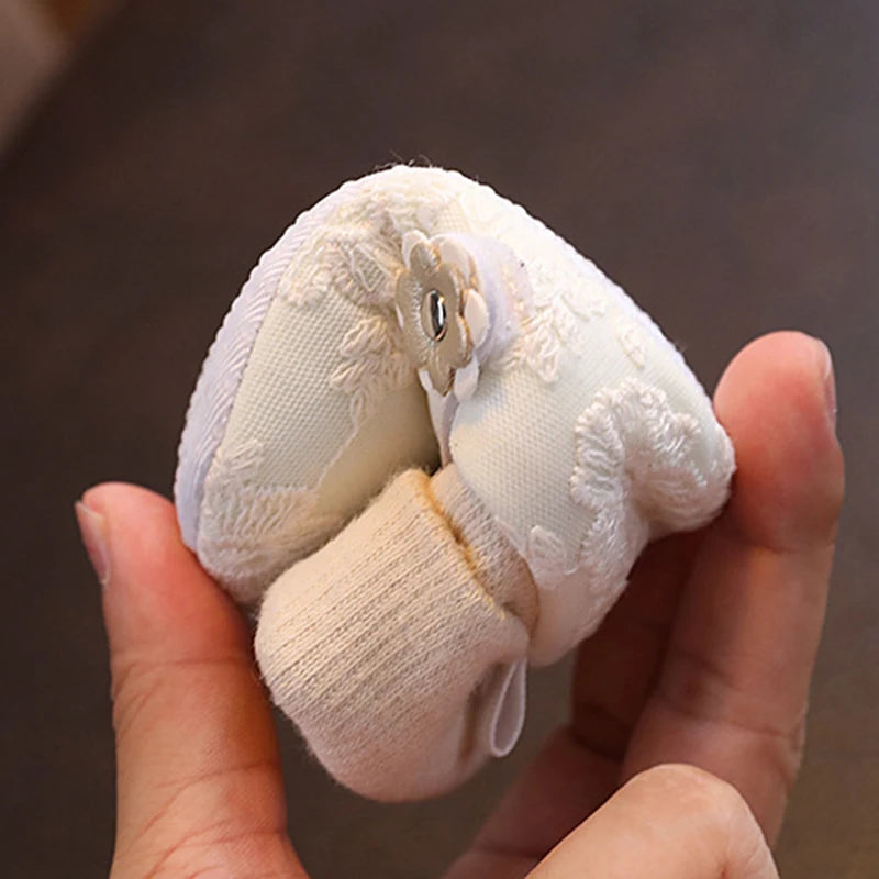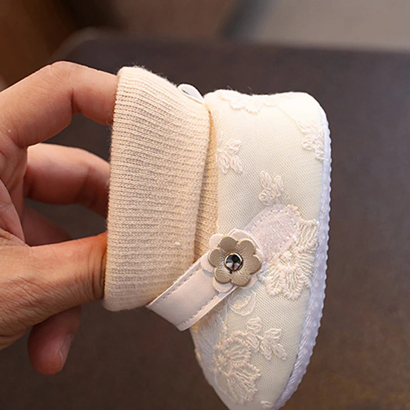 Baby Girl Sock Shoes Soft Floral Embroidery Non-slip Flats Warm Walking Shoes for Newborn Infant Toddler