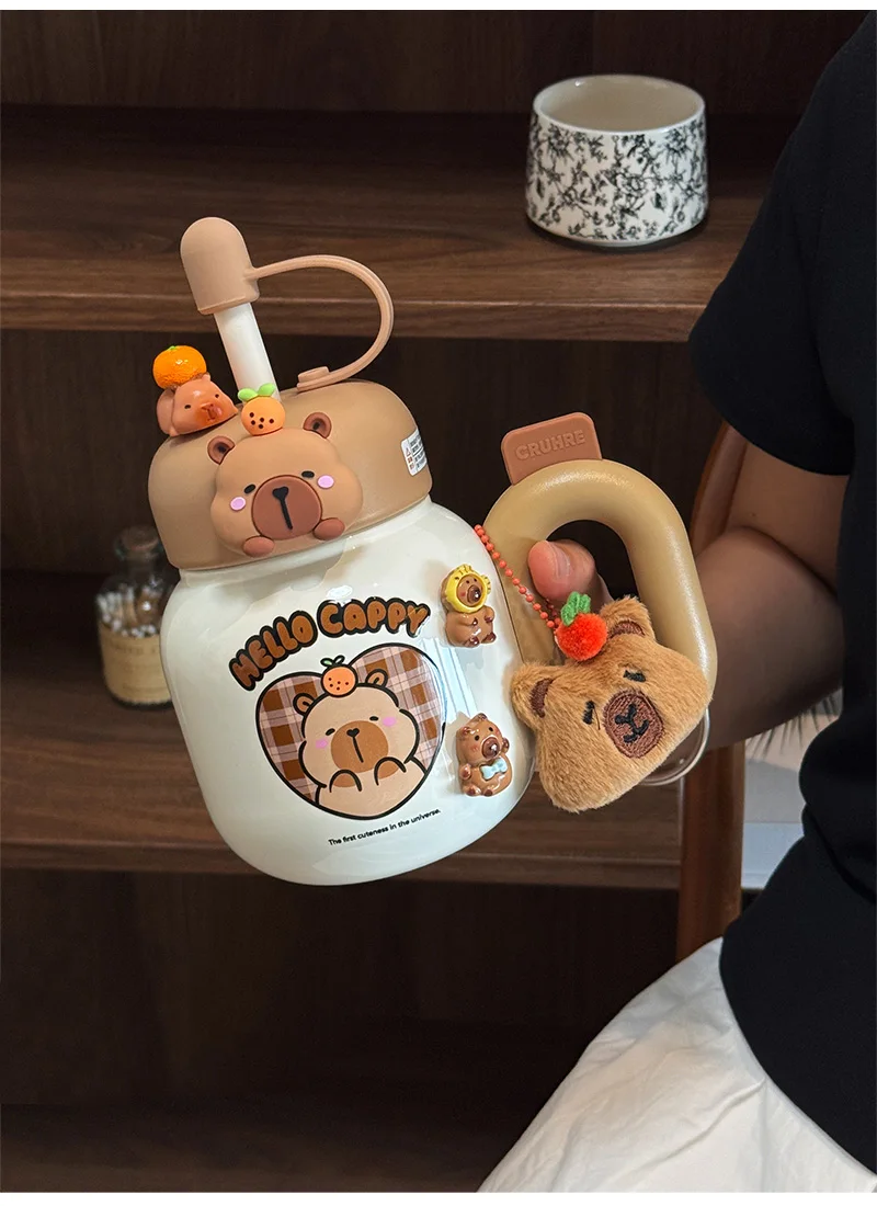 Cute Thermos Bottle With Handle Girls Straw Water Cup Desktop 316 Stainless Steel Tea Water Separation Insulated Cup Tumbler