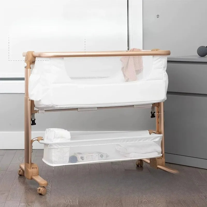 Discount Baby Bassinet, Easy Folding Portable Crib with Storage Basket for born, Bedside Bassinet, (Bassinet) (White & Gold)
