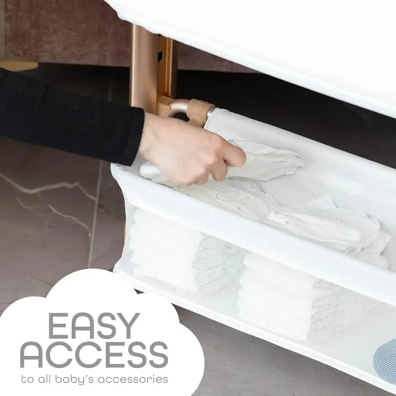 Baby Bassinet, Bedside Sleeper for Baby, Easy Folding Portable Crib with Storage Basket