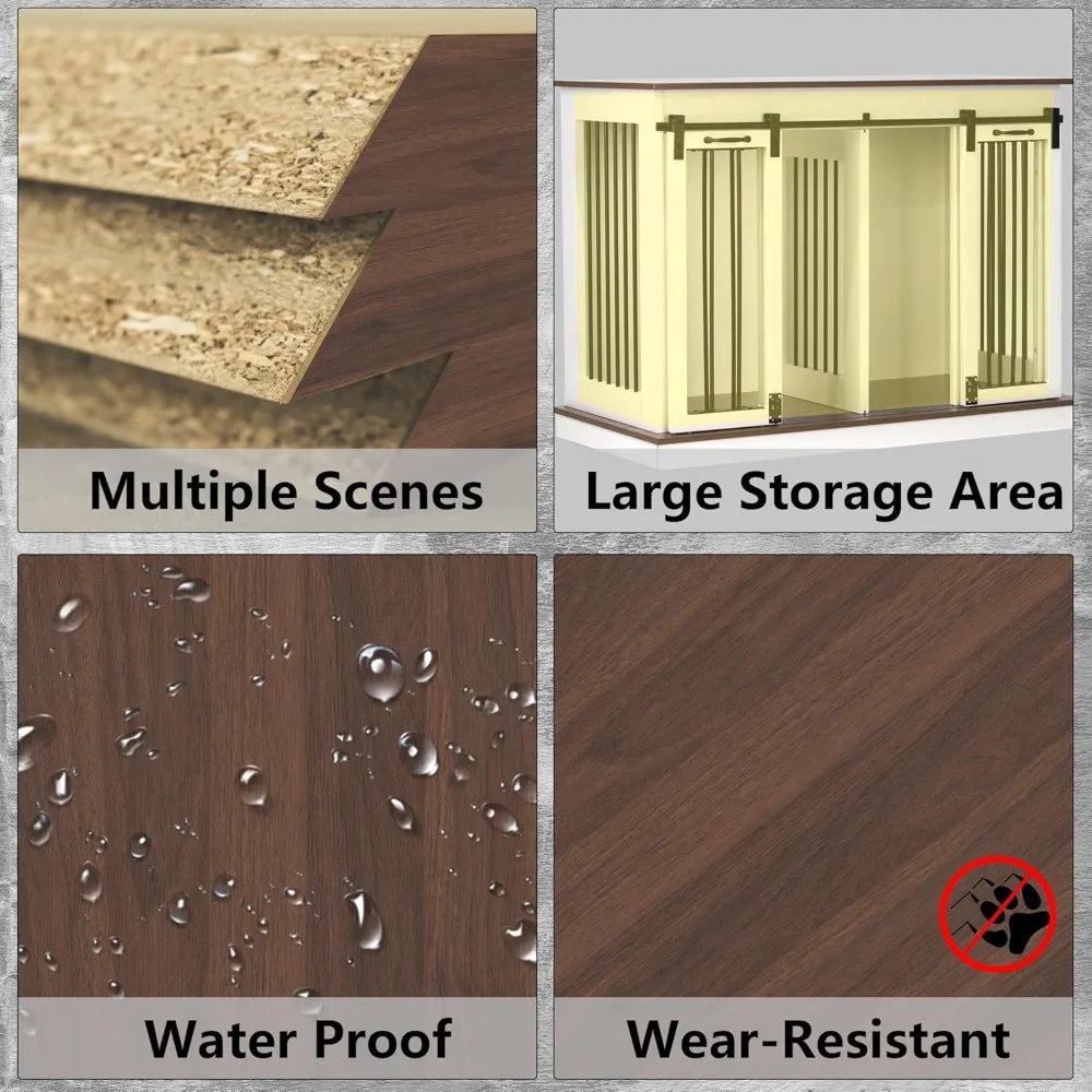 - 🐶【Durable Design】Our dog crate furniture is made from sturdy engineered panels and reinforced with metal parts to provide durability without sacrificing style. The top-quality wood grain table top is waterproof, easy to clean, and can withstand daily wear and tear. Its resilient structure can support objects weighing up to 132 pounds, providing extra utility in addition to accommodating pets.
