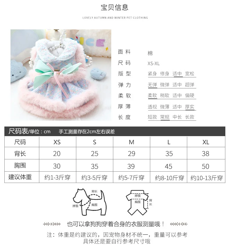 Dog Fur Dress Autumn and Winter Thick Cat Princess Dress Colorful Plush Lace Coat Traction Small Dog Teddy Pet Top Puppy Clothes