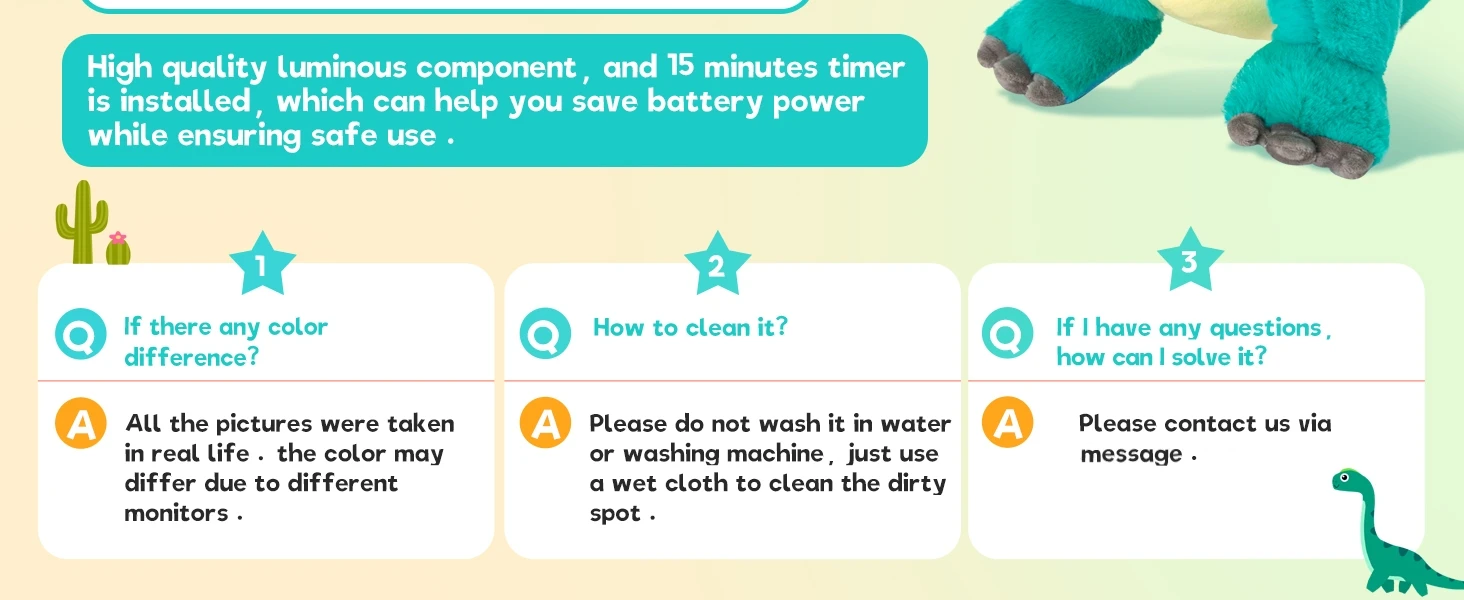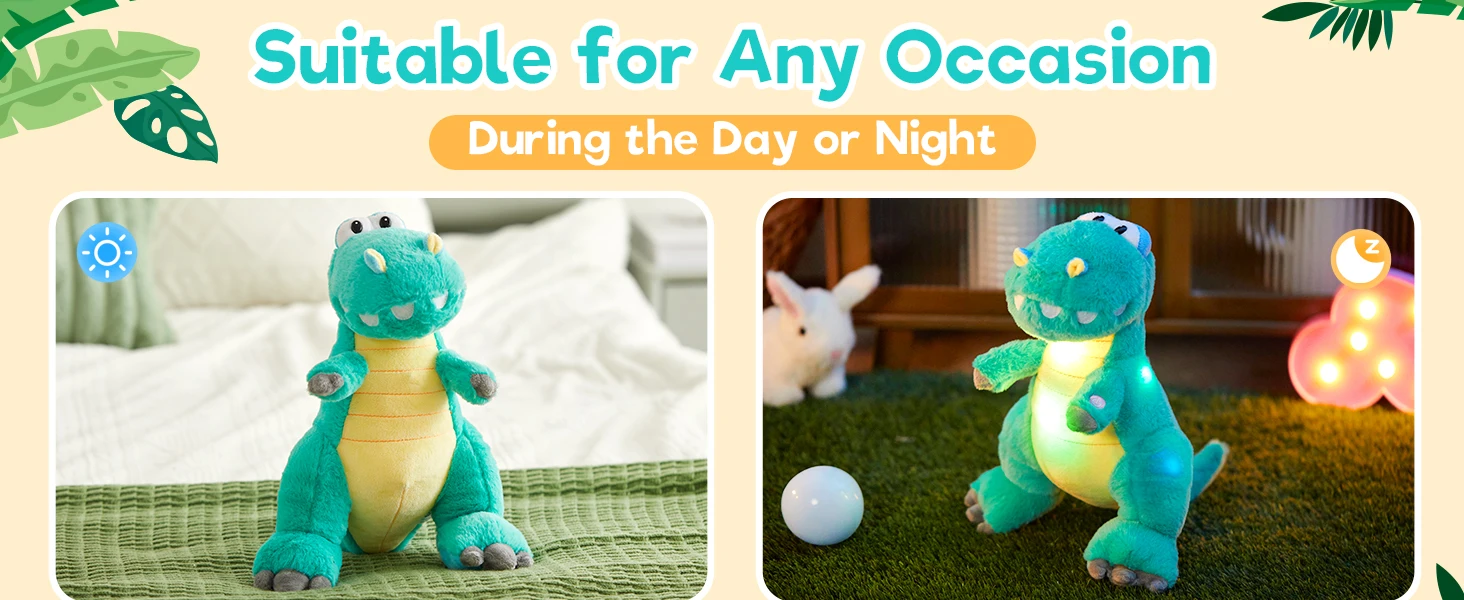 Glowing Green Dinosaur Plush Toy,Cuddly Dinosaur Stuffed Animal With Colorful Lights, Happy Mother's Day Gift