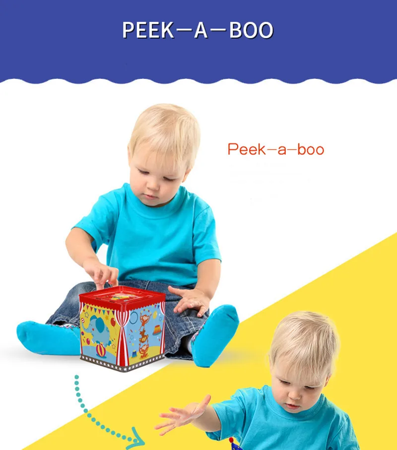 EARLY LEARNING: Baby has her first experience with peekaboo, cause & effect, and object permanence with this nostalgic toy.