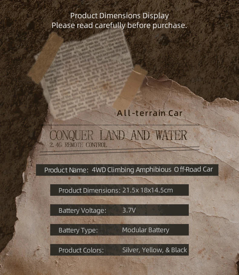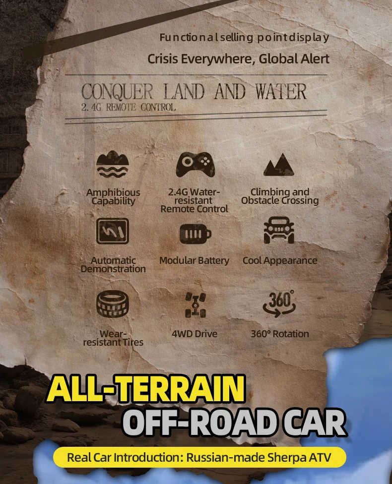 Amphibious Waterproof Design: Built with a fully waterproof wrap, this remote control car ensures the batteries stay dry while floating effortlessly on water. Enjoy worry-free play in puddles, lakes, or even the pool!