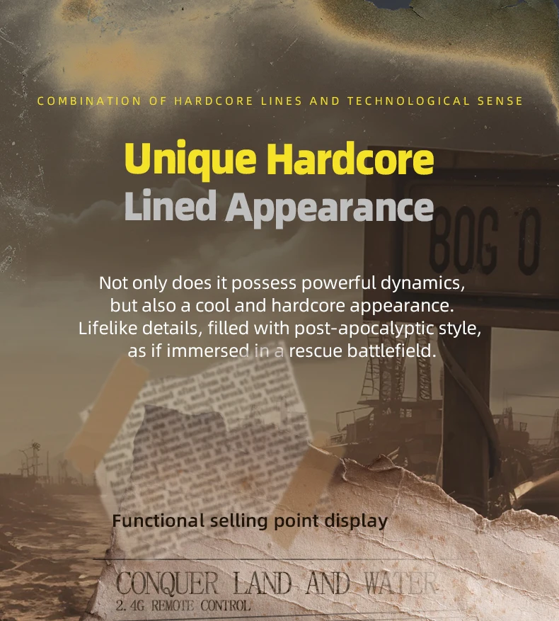 Easy-to-Use Remote Control: The 2.4GHz remote offers a 100-foot range for smooth and precise control Note: Avoid saltwater exposure and rinse the truck after use to prevent corrosion. (The remote is not waterproof.)