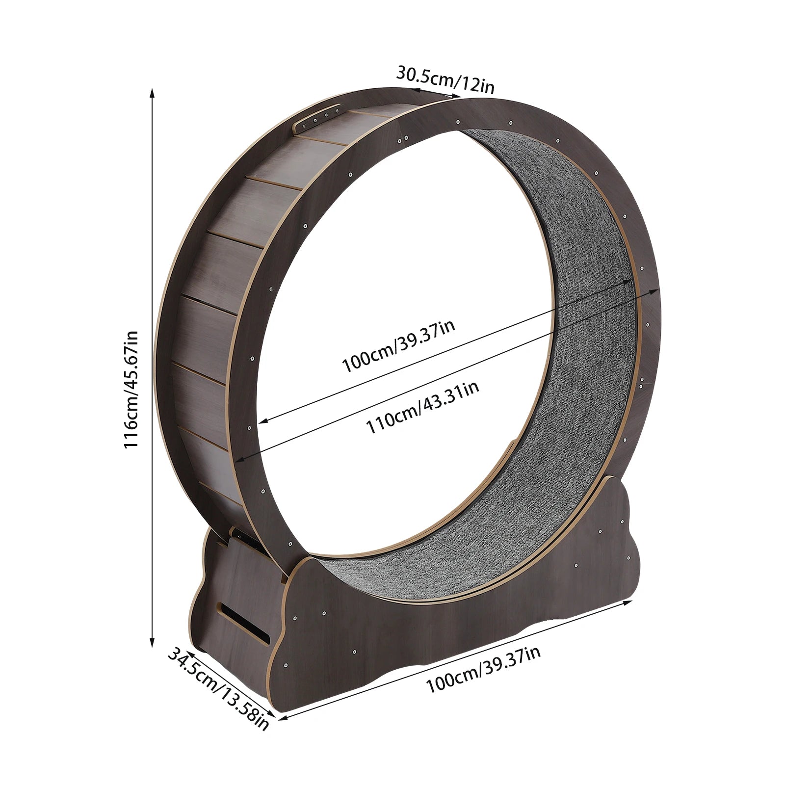 Thoughtful Design: Roller track design allows cats to run easily at any time. Its large inner diameter of 3.28 ft and 12-inch wide runway allows cats to run as much as they want without hurting their spine.