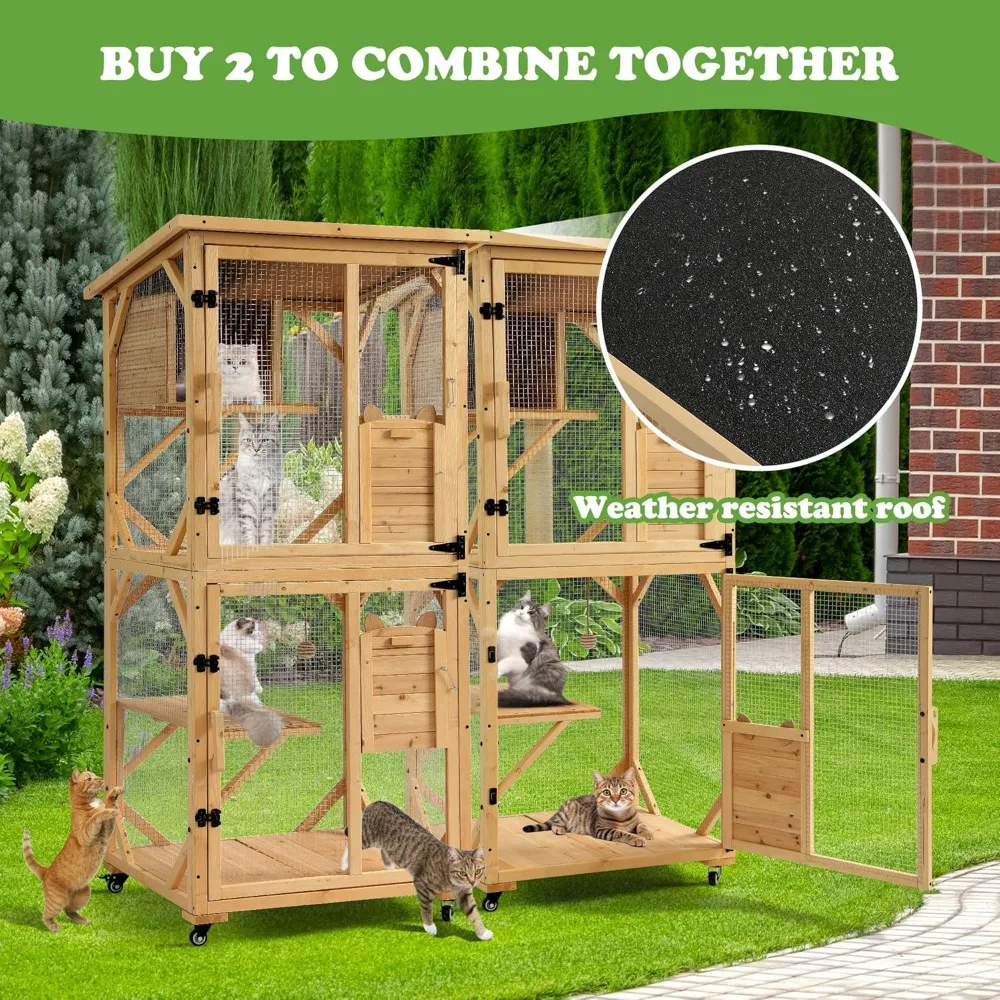 Multi-Level Outdoor Cat Enclosure with Window Access, Portable Indoor Cat House, Removable Floor for Large Cats