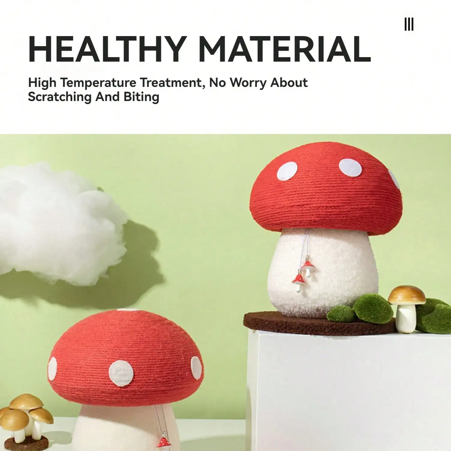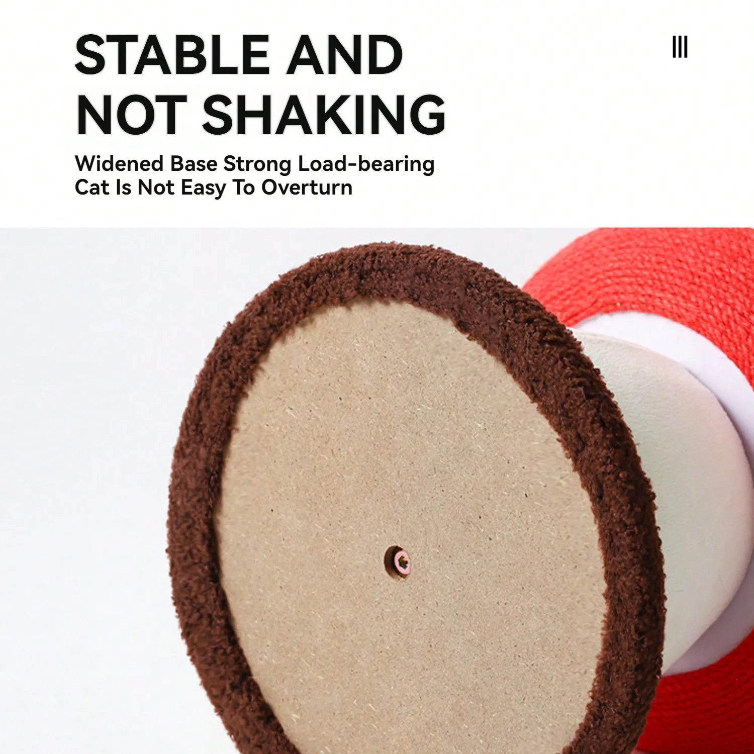 "UNIQUE MUSHROOM DESIGN: Our scratching post features an attractive mushroom design to attract your cat's attention. Inspires your furry friend's natural instinct to scratch, exercise and play. Also a fun addition to your home decor. QUALITY & SAFETY: Handcrafted from premium rope and flannel, it provides your active kitty with plenty of room to stretch out and scratch from all angles. The wide base ensures stability and prevents tipping or shaking.