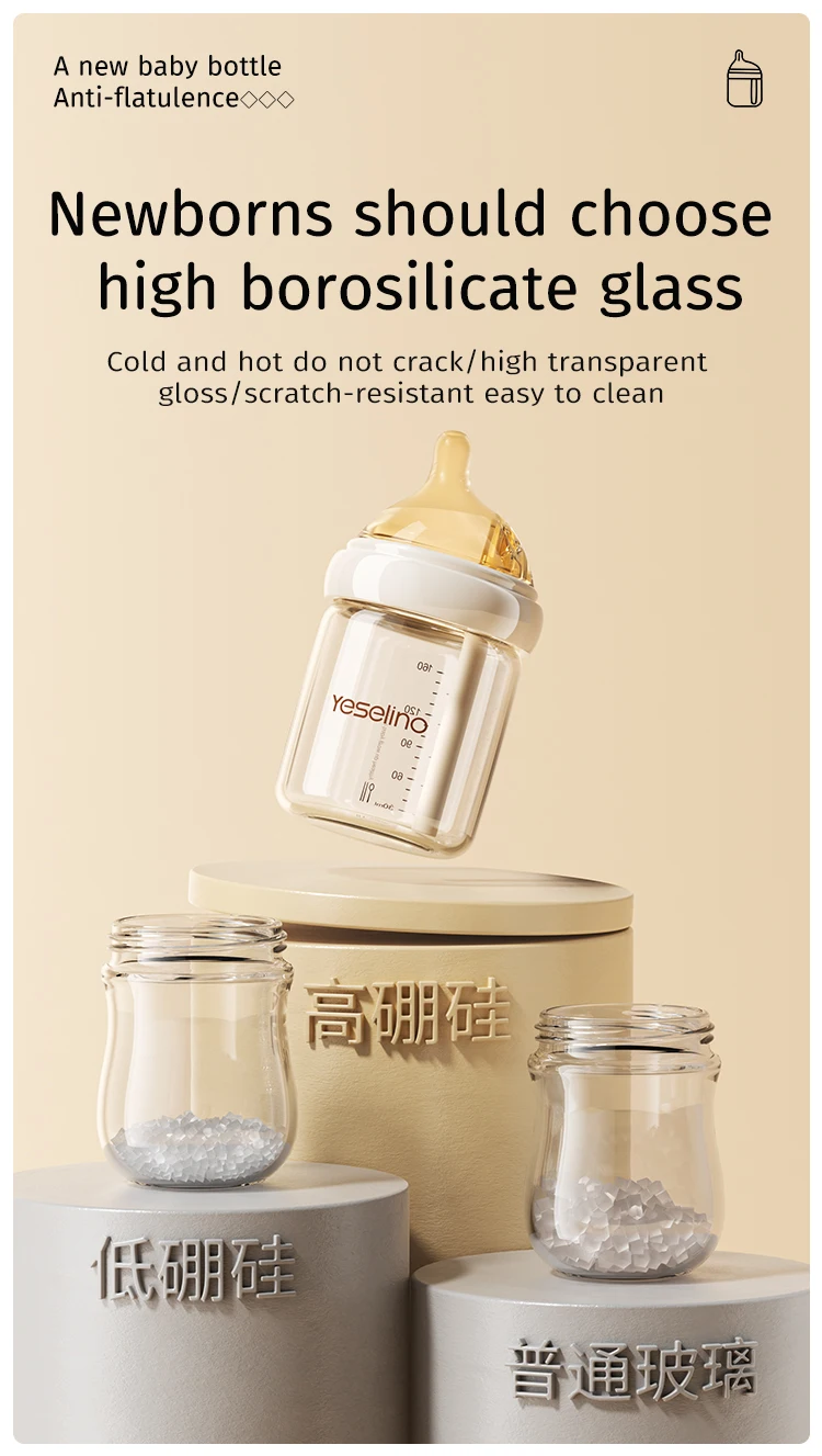 Newborn Baby Items Feeding Bottle 0-6 Months Anti Bloating Anti Spitting Choking Bebe Glass Baby Bottles 160ml Silicone Nipple