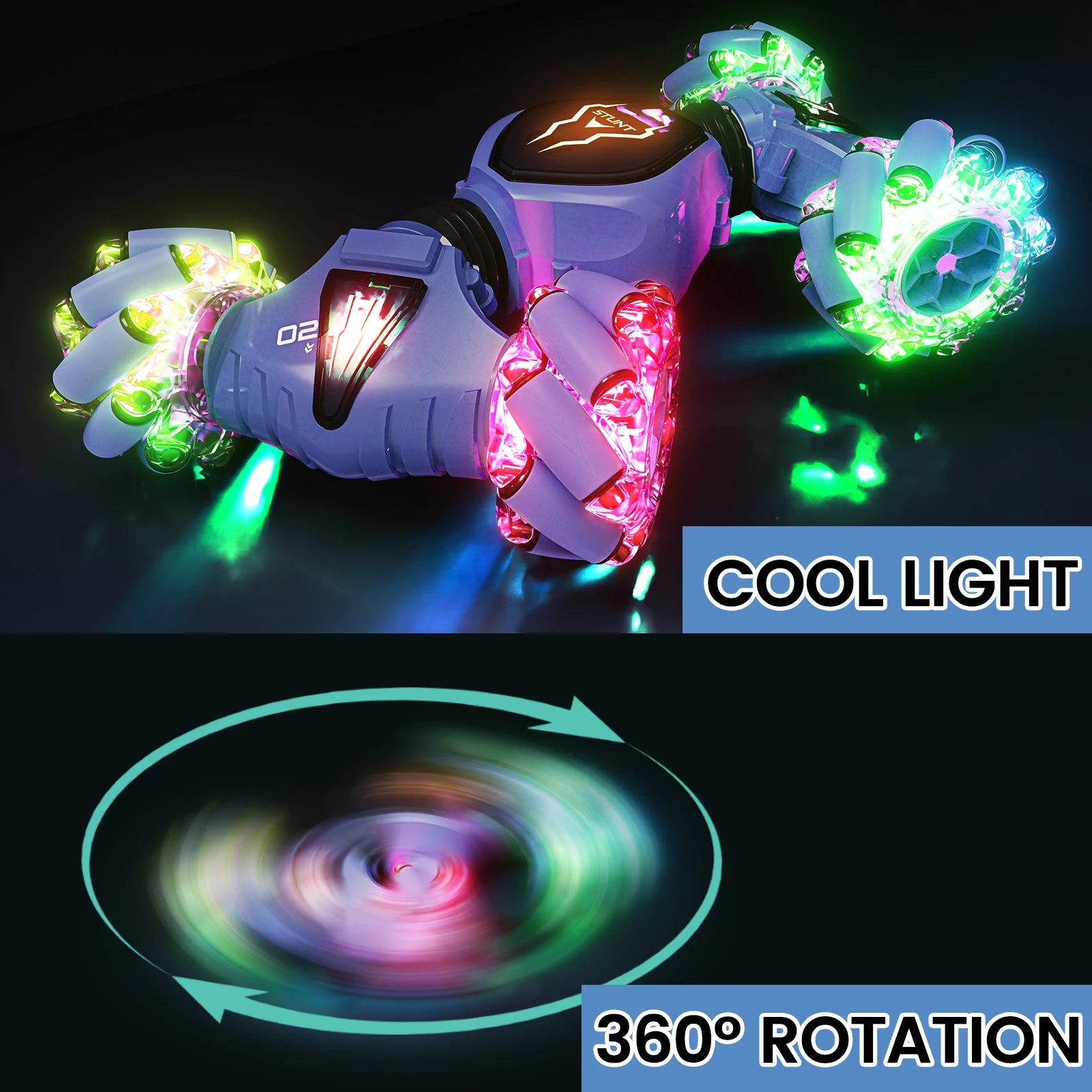 Remote Control Cars with Lights&Quick Hand Control , 2.4GHz 4WD Gesture Sensing, 360° Rotating Double Sided RC Stunt Car Toys