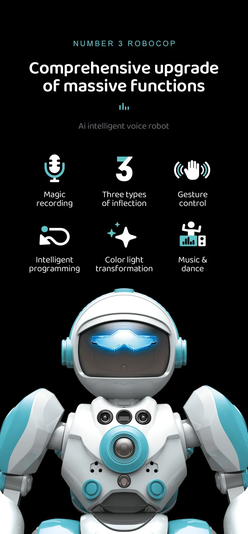 Smart Kids Robot Interactive Intelligent Robo for Kids Robotics Music Dance Record Repeat Touch Gesture Control Toys for Boys