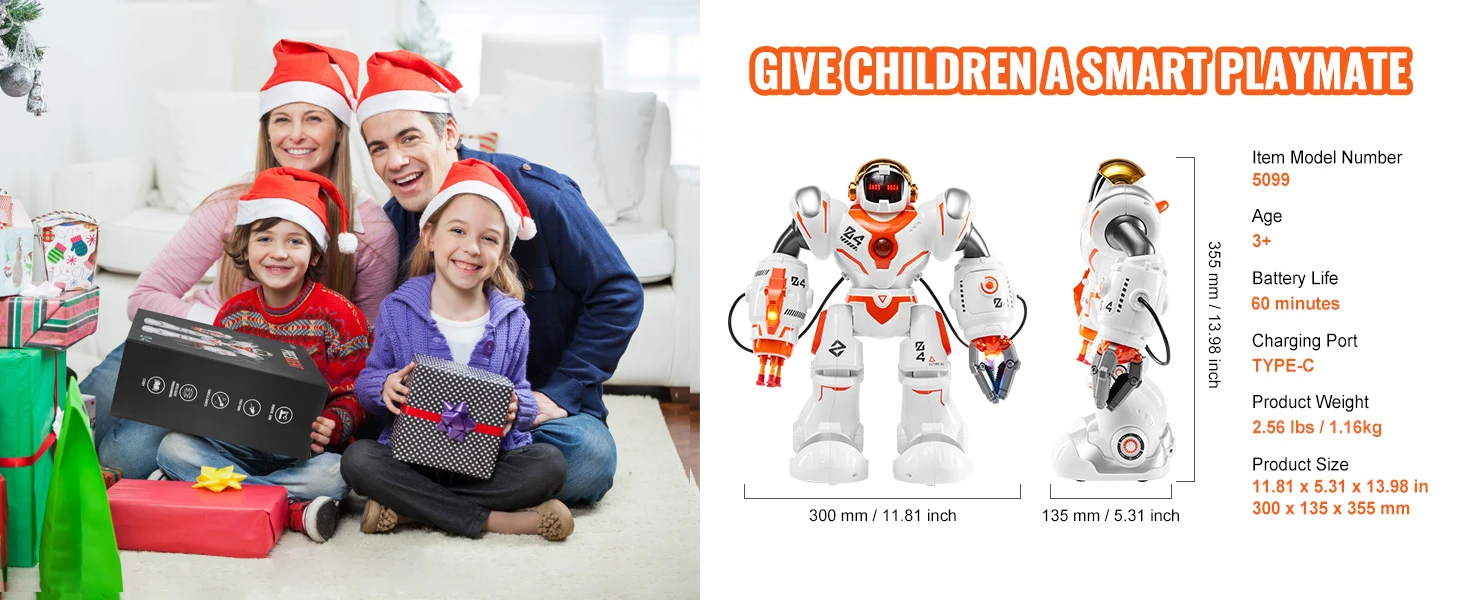 Easy Type-C Charging: Charge up with ease using the Type-C port! You can charge the kids robot via a USB connection to a power bank, plug, or computer, adding to its practicality. It's a fun, high-tech gift that encourages creativity and provides endless enjoyment.