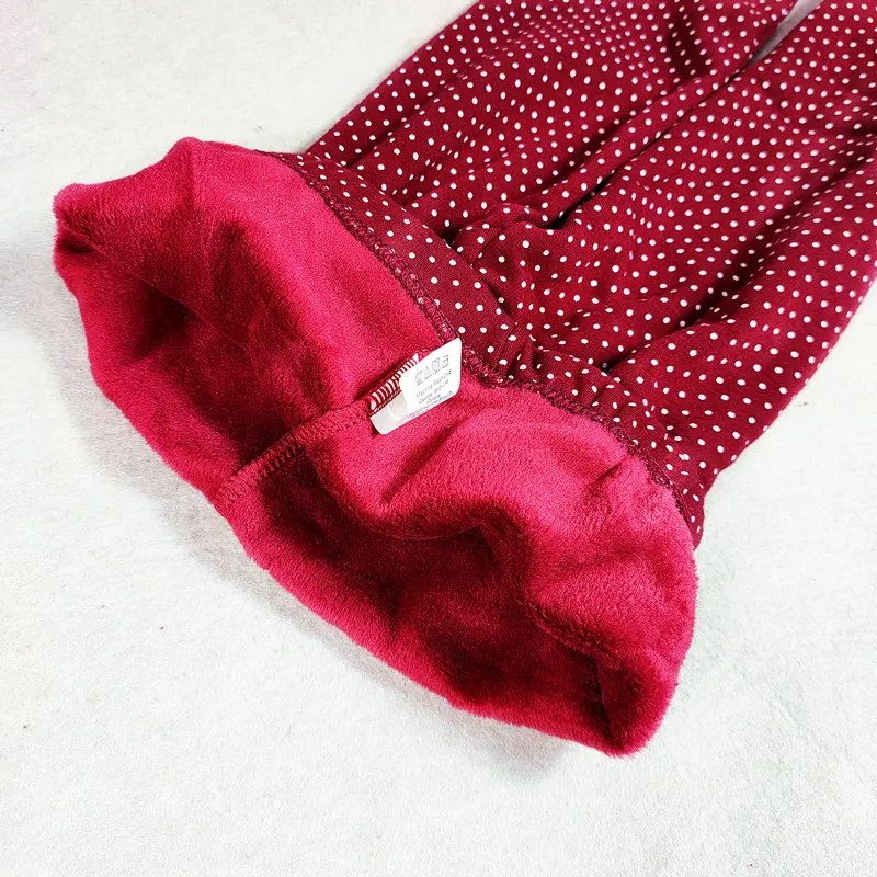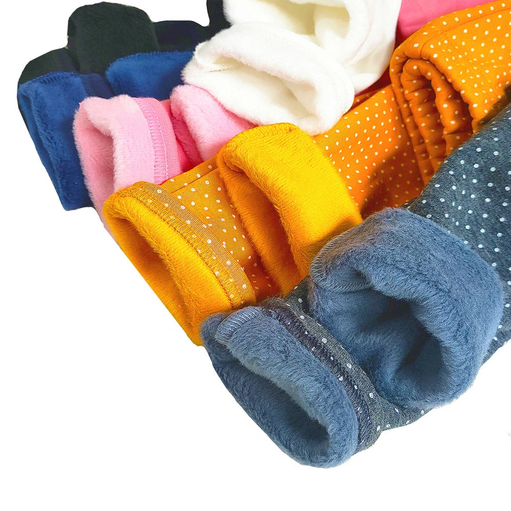 Sweet Leggings Girls Dot Velvet Pants Autumn Winter Kids Cotton Stretch Warm Trousers Baby Girls Elastic Waist Slim Pants