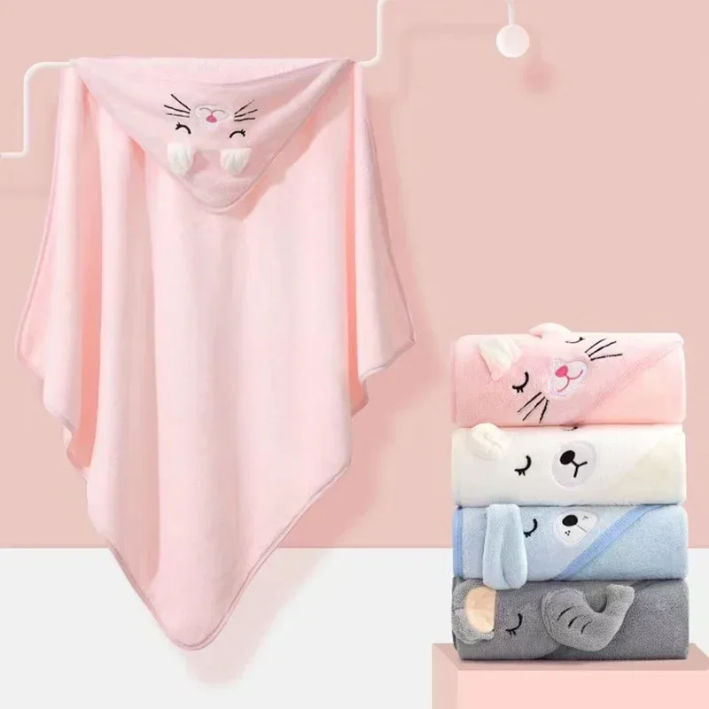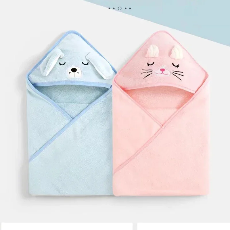 Toddler Bathrobe Infant Bath Towel Boy Girl Blankets Swaddle With Hood Cartoon Coral Fleece Towel Blanket Newborn Kids Bedding