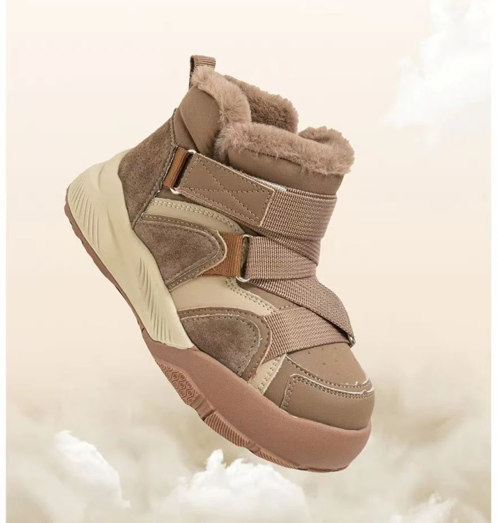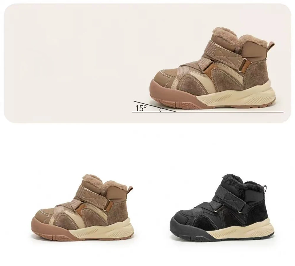 Winter Snow Boots For Children PU Leather Thick Warm Plush Boots For Boys Girls Soft Warm Cotton Shoes For Teenager Kids