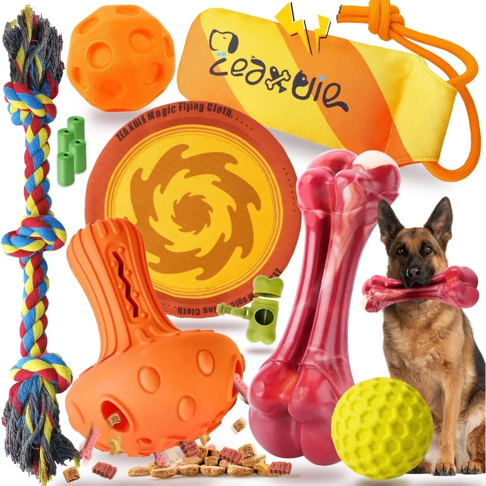 Zeaxuie 12 Pack Heavy Duty Various Dog Chew Toys Pack for Aggressive Chewers - Includes Large Rope Toys, Squeaky Toys & Indestru